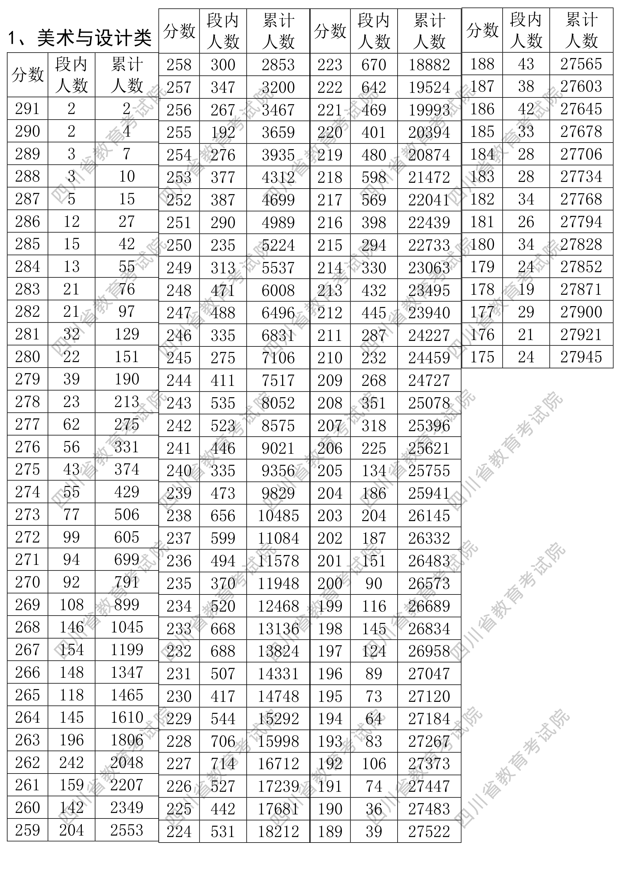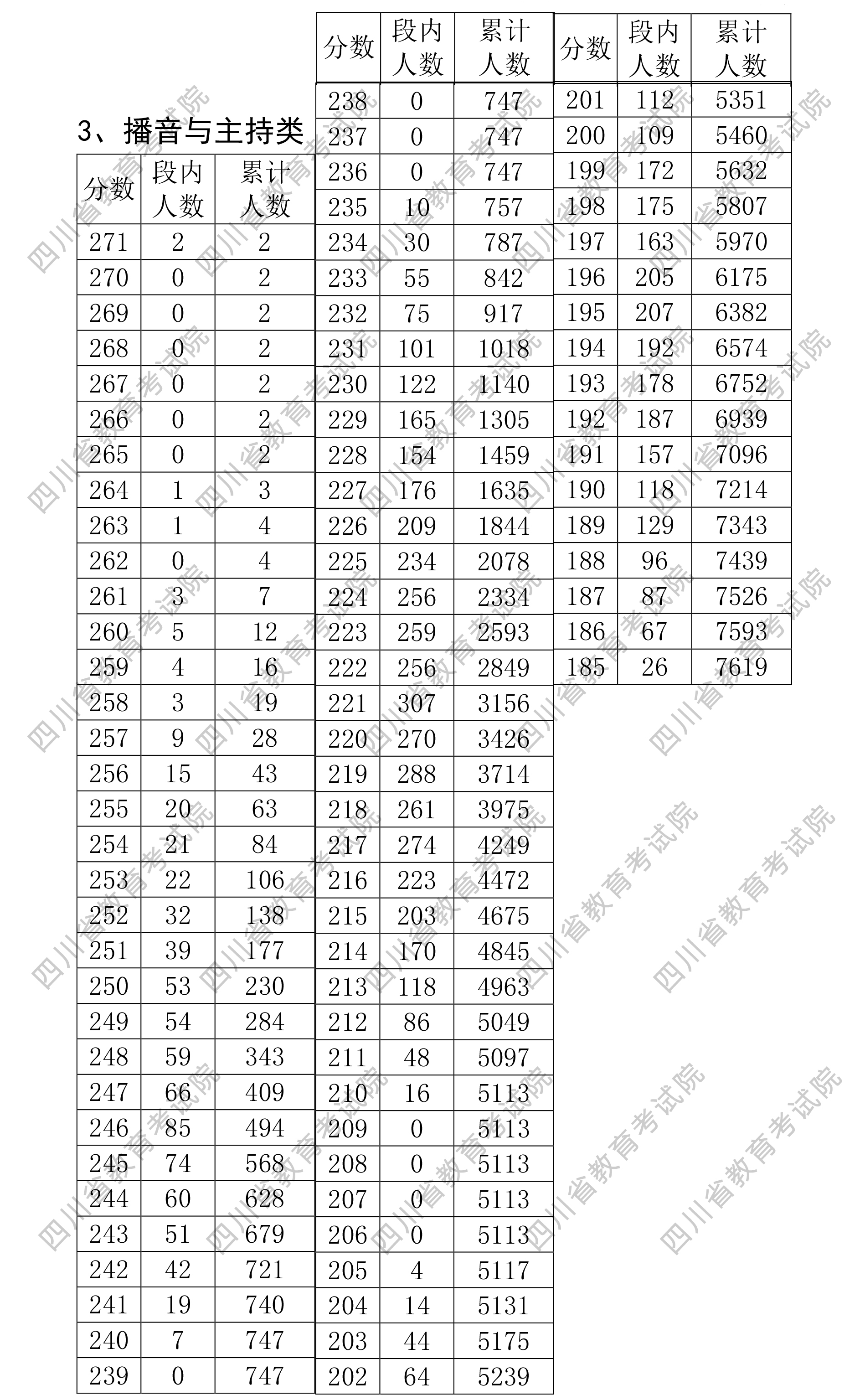 四川省2024年普通高校招生本科艺术类综合成绩、体育类专业成绩分段统计表