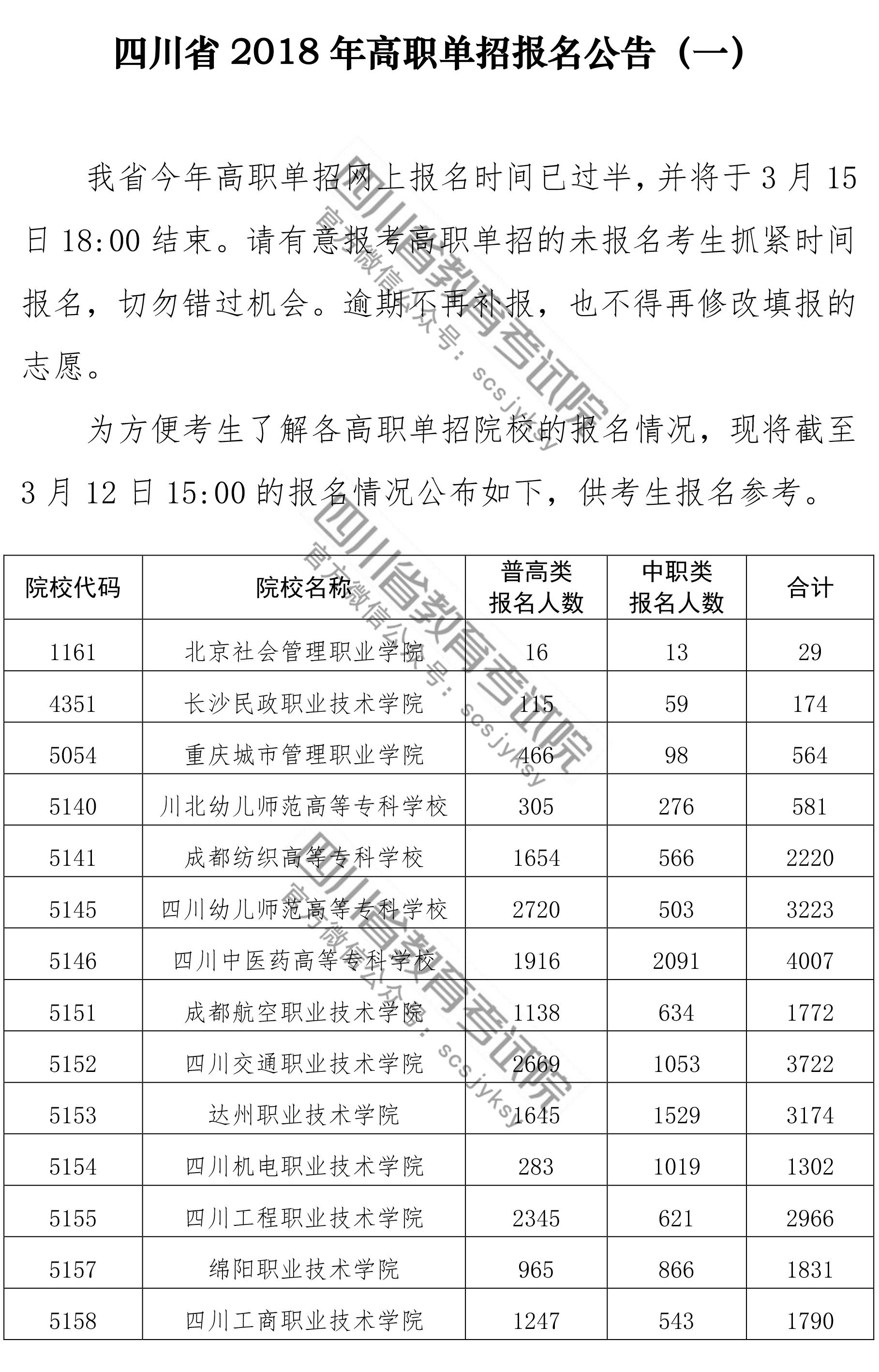 四川省2018年高职单招报名公告(一)