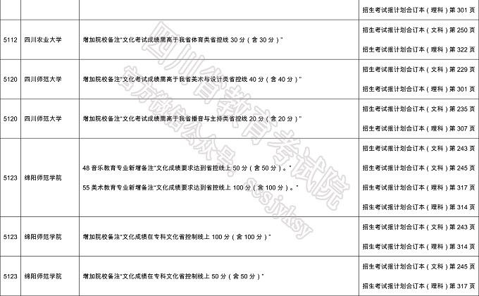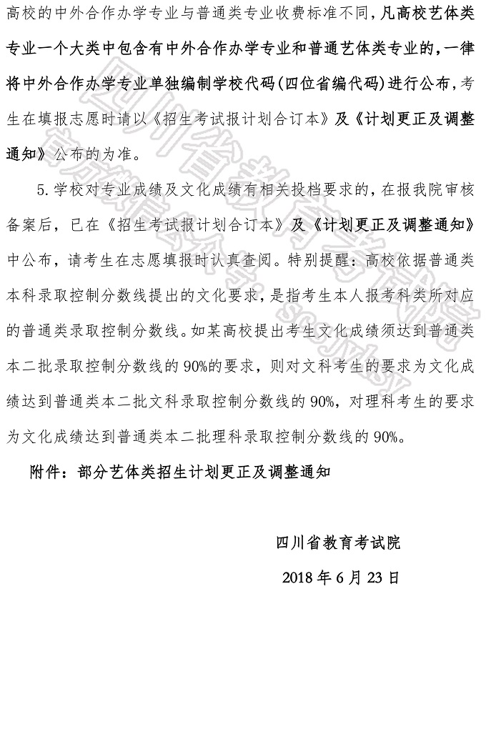 四川省艺体类考生志愿填报注意事项和《部分艺体类招生计划更正及调整通知》