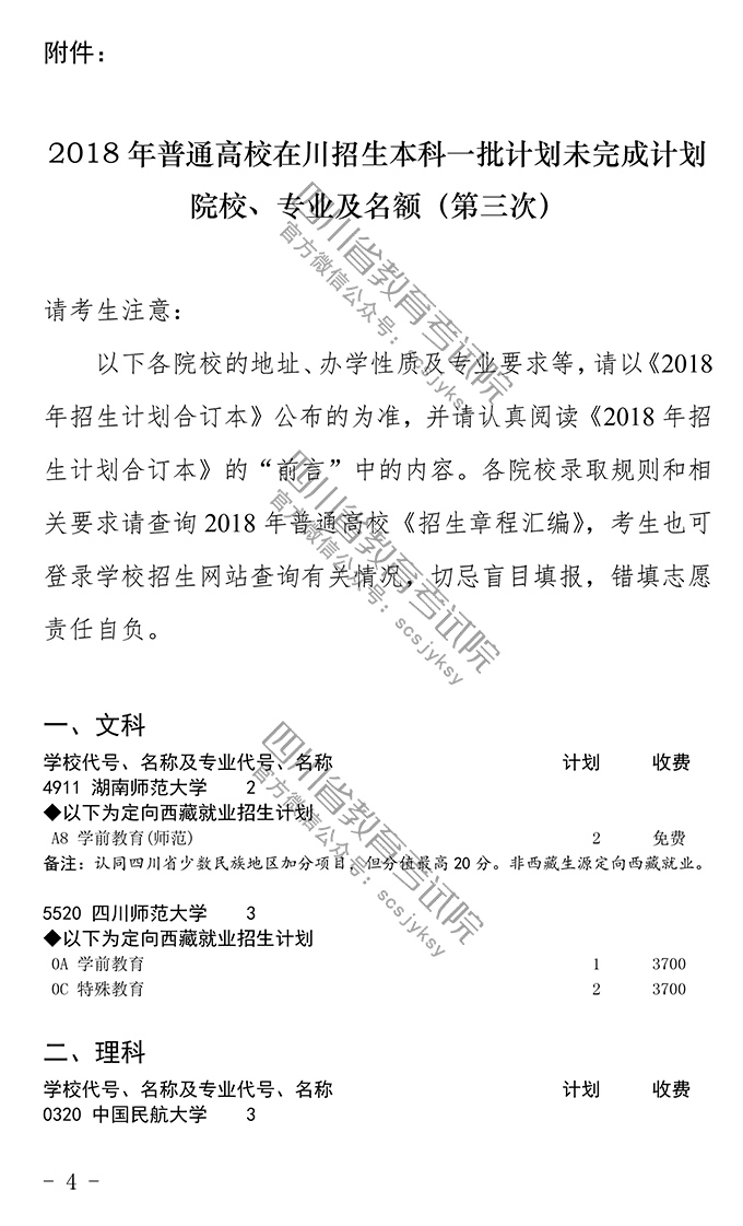 关于专科批征集志愿的通知(含理科计划)