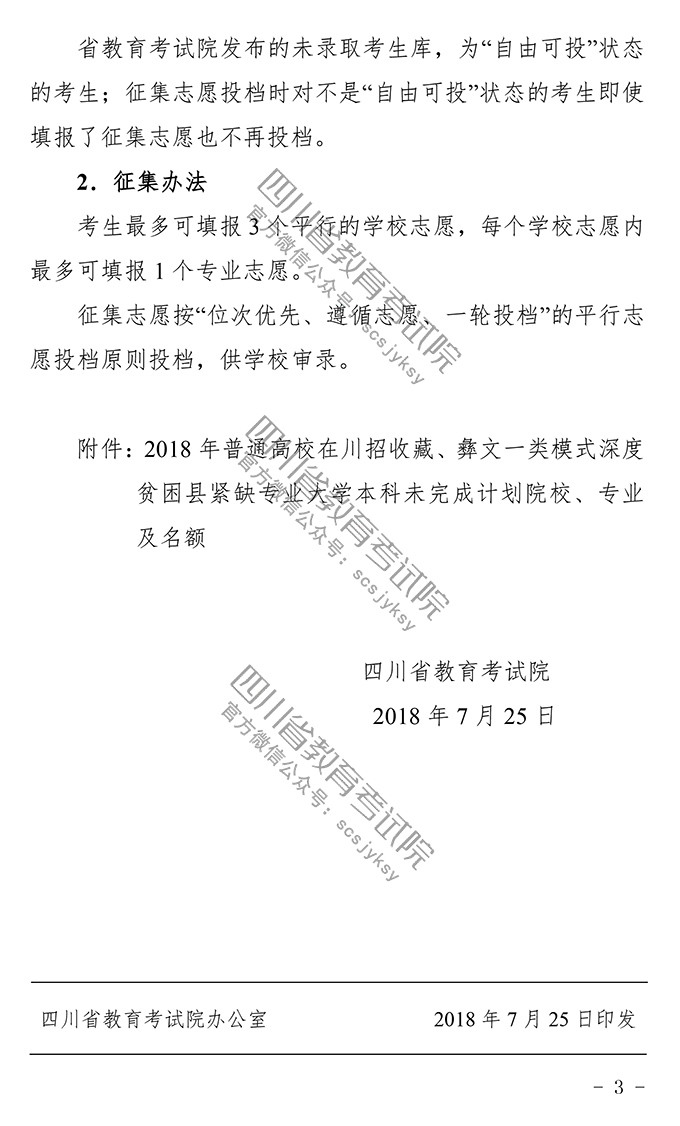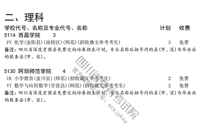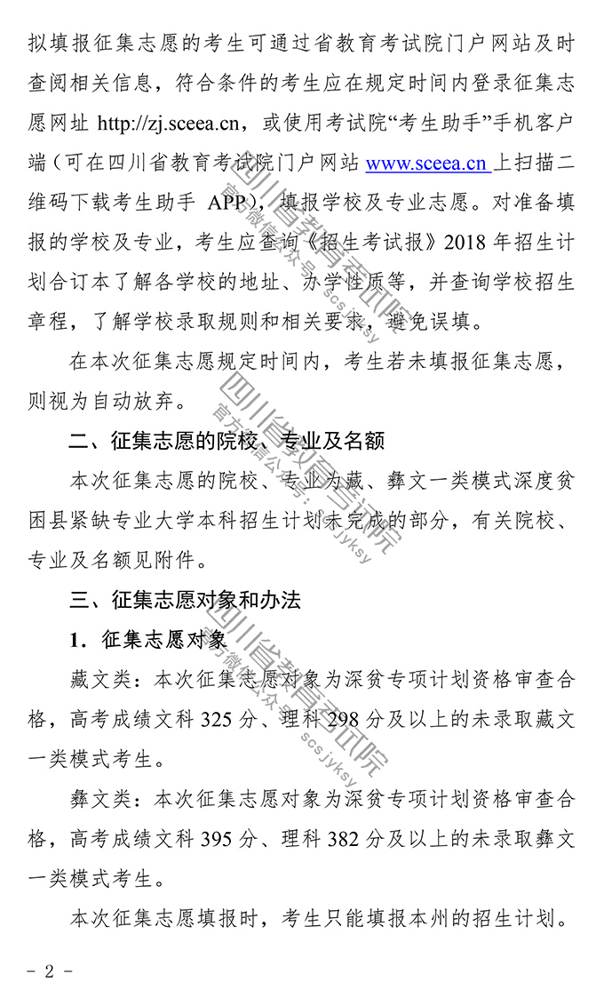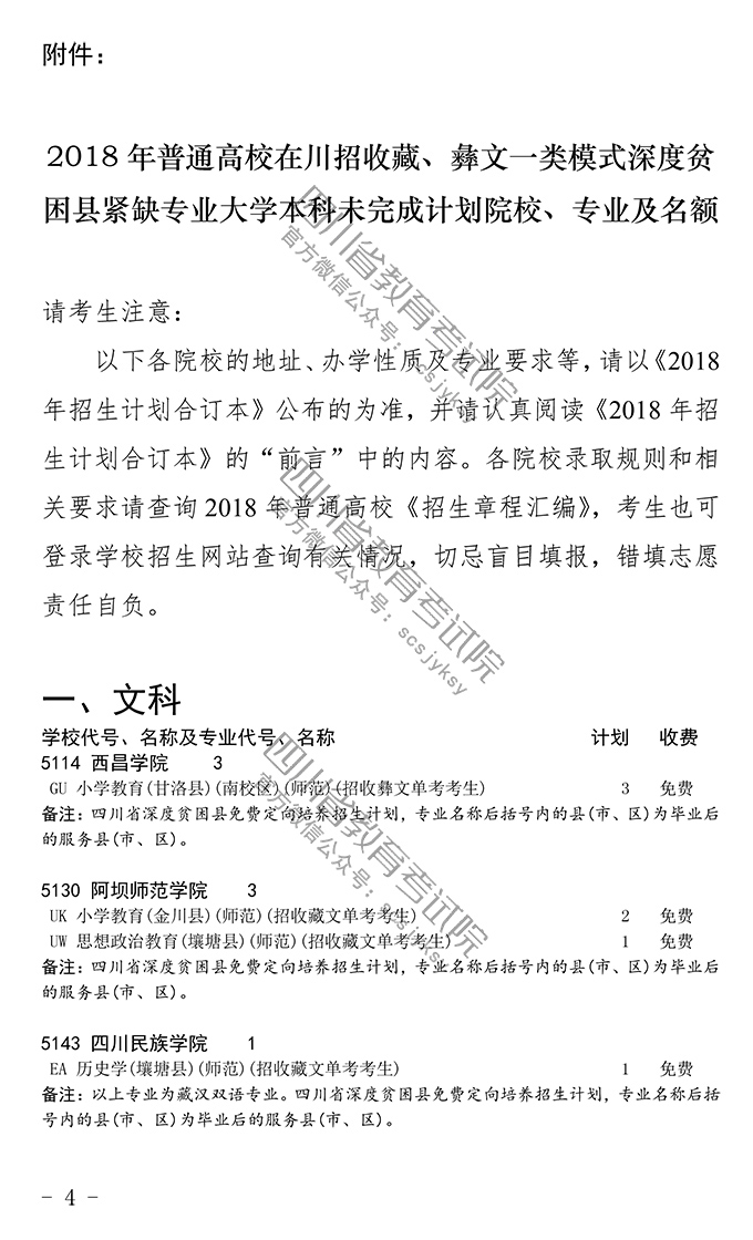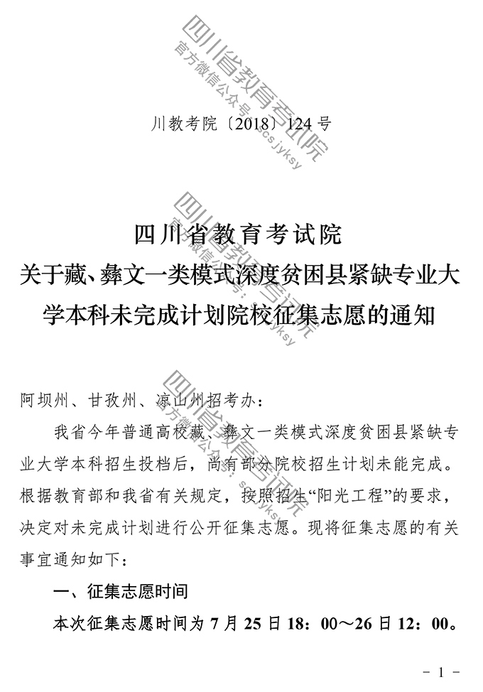 关于藏、彝文一类模式深度贫困县紧缺专业大学本科未完成计划院校征集志愿的通知