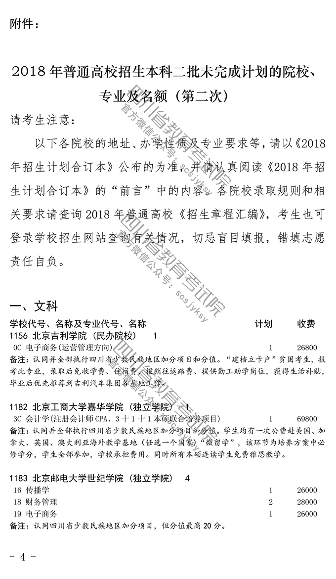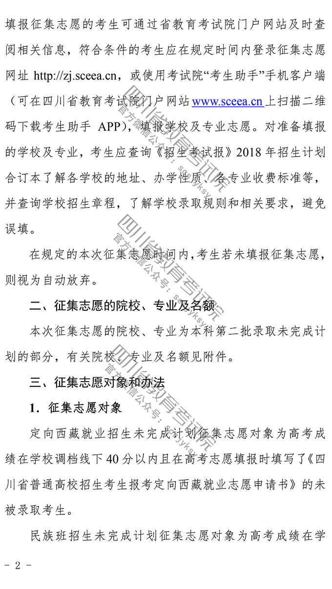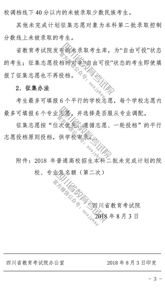 关于普通高校本科第二批录取未完成计划院校第二次征集志愿的通知