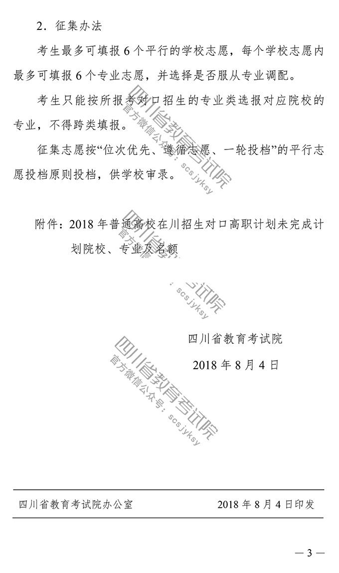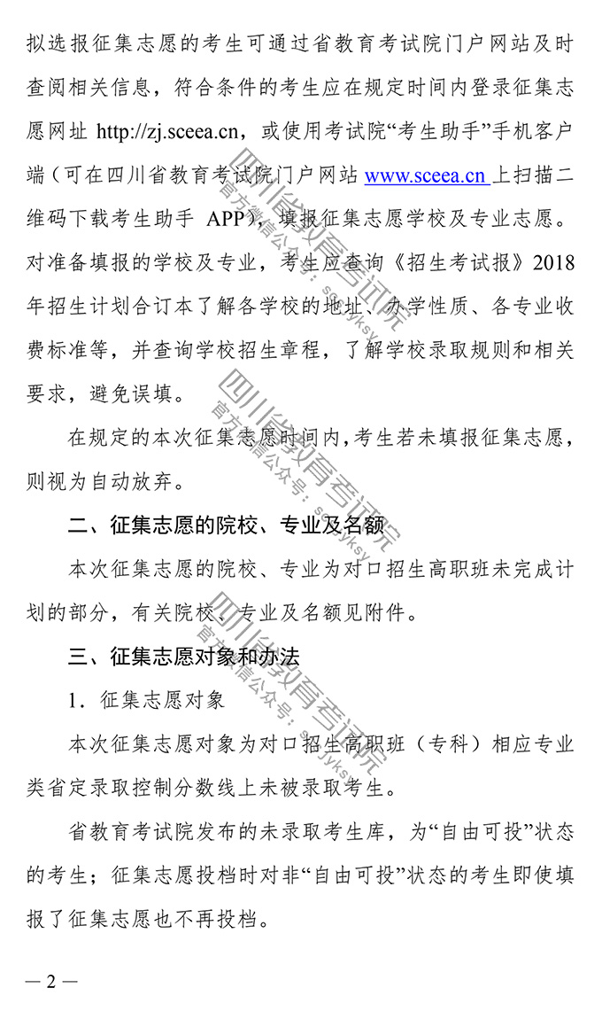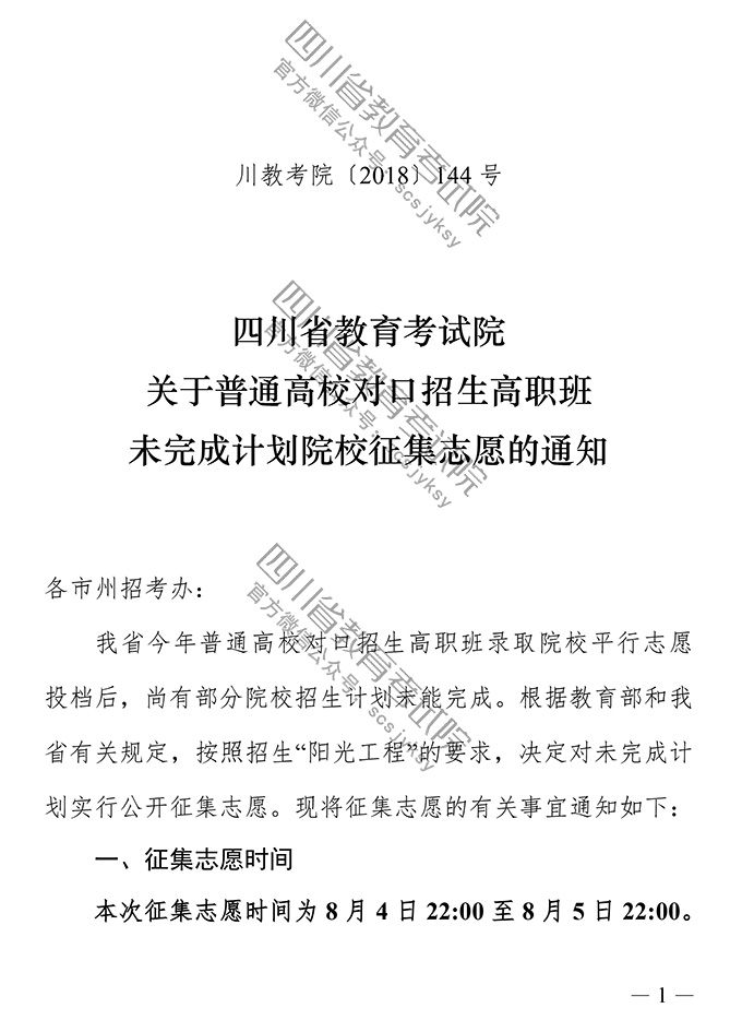 关于普通高校对口招生高职班未完成计划院校征集志愿的通知