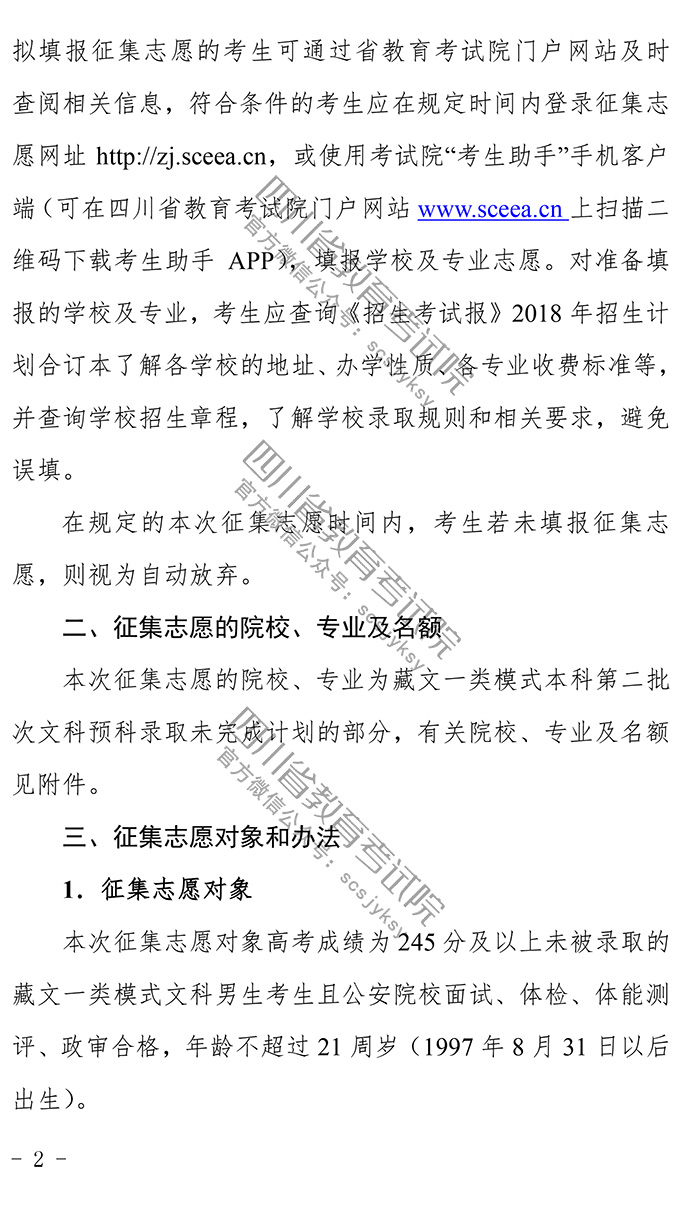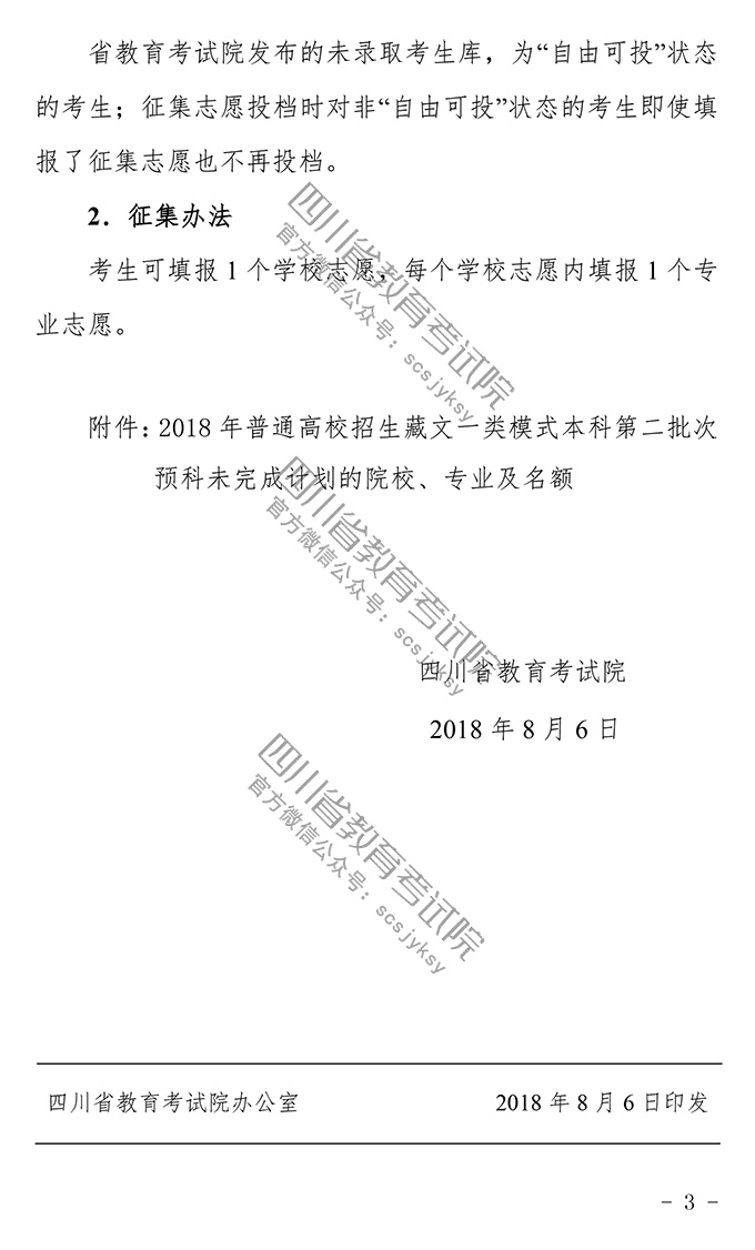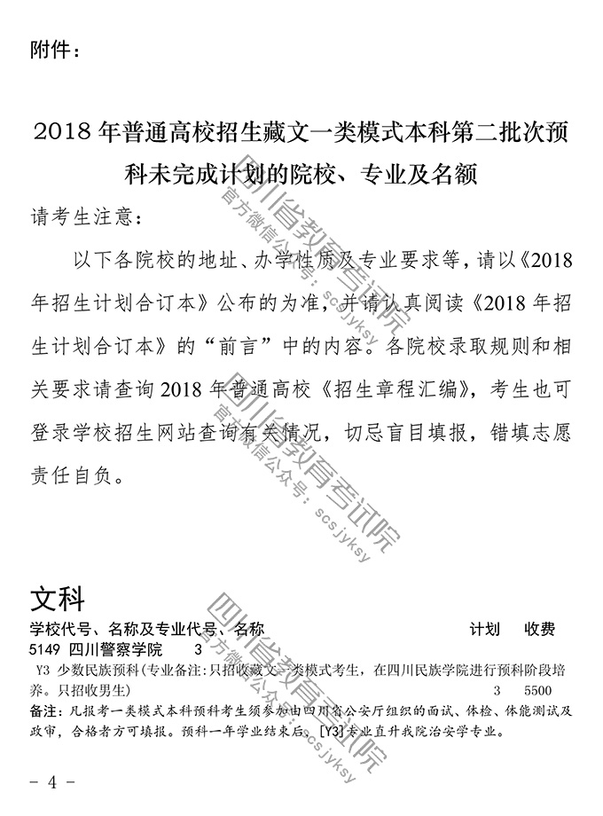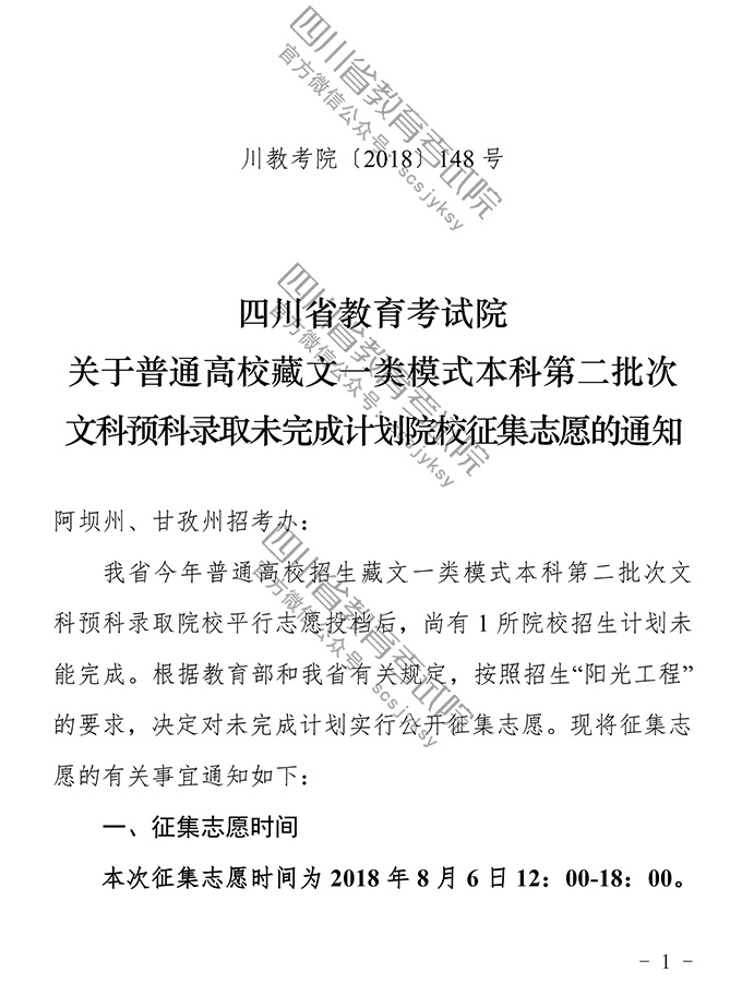 关于普通高校藏文一类模式本科第二批次文科预科录取未完成计划院校征集志愿的通知