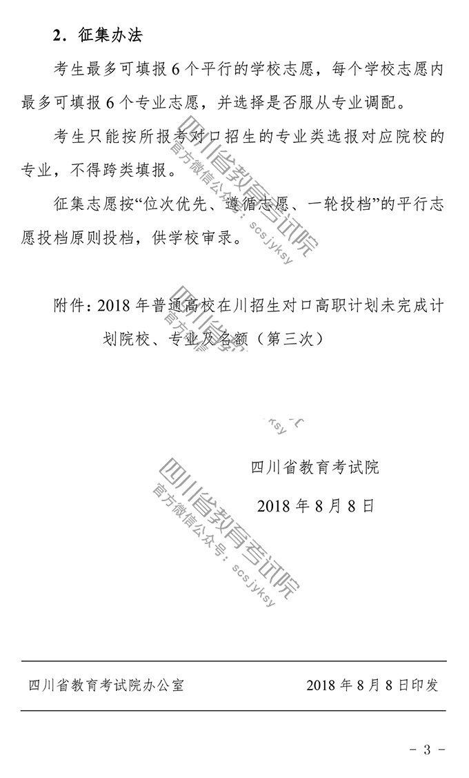关于普通高校对口招生高职班未完成计划院校第三次征集志愿的通知