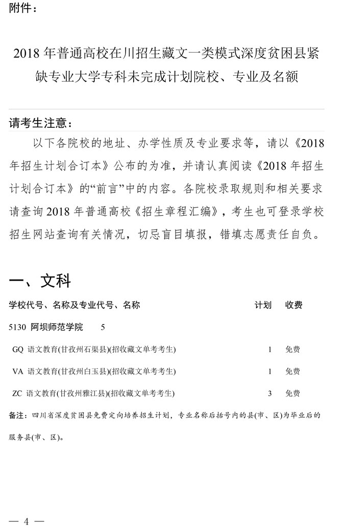 关于藏文一类模式深度贫困县紧缺专业大学专科未完成计划院校征集志愿的通知