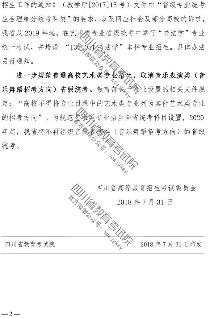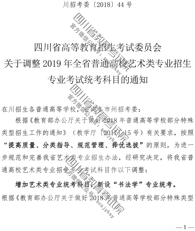 关于调整2019年全省普通高校艺术类专业招生专业考试统考科目的通知