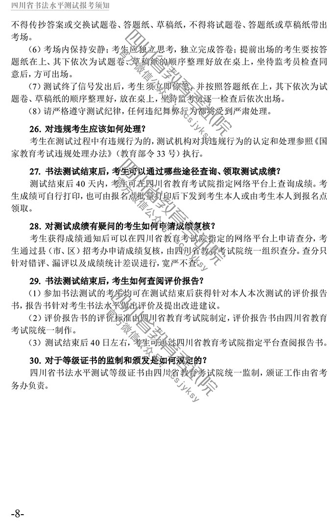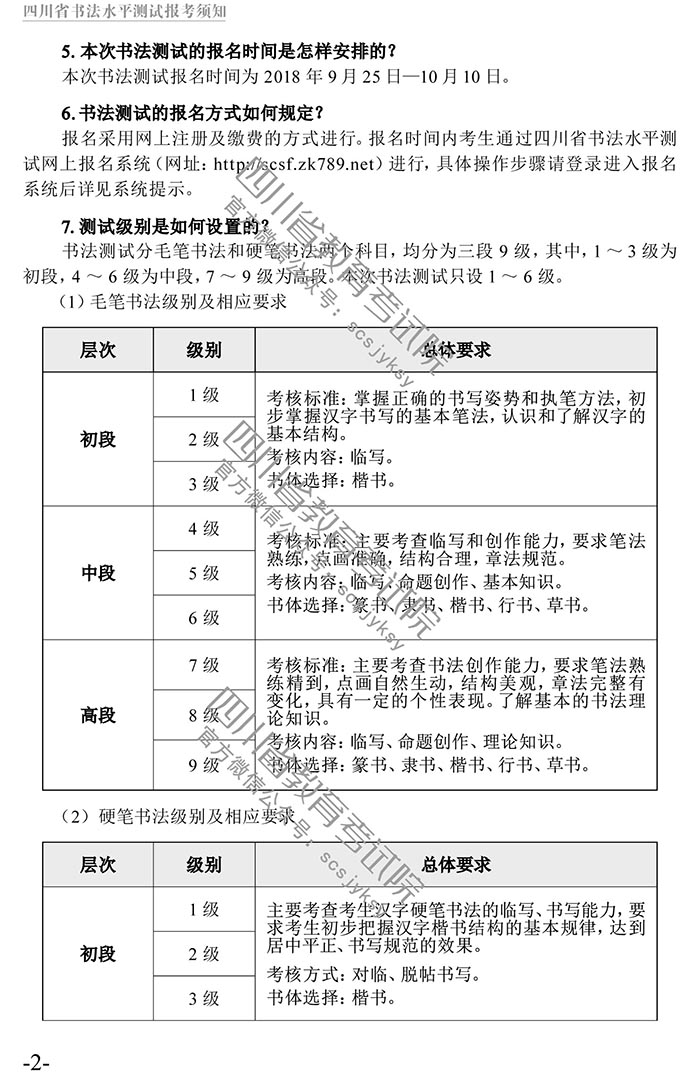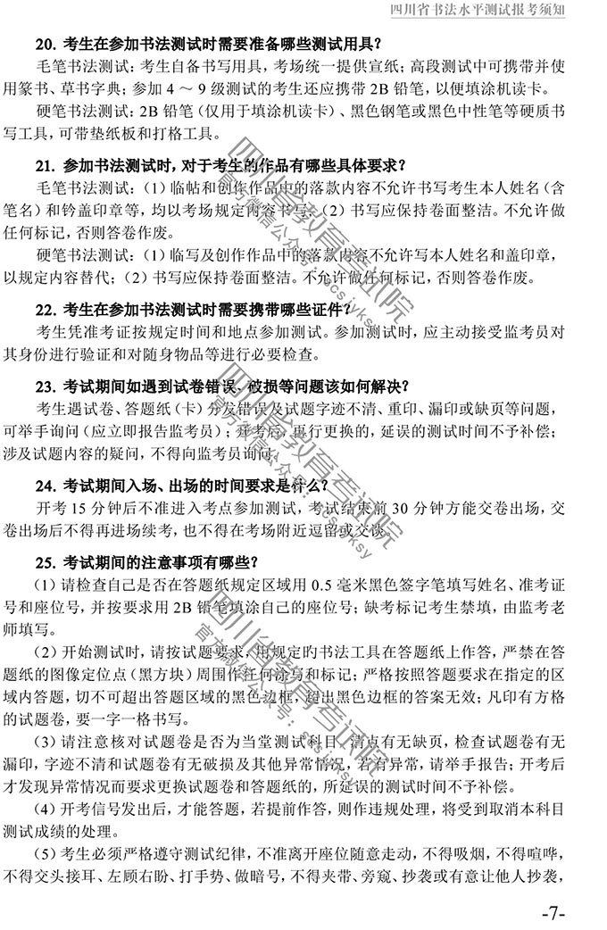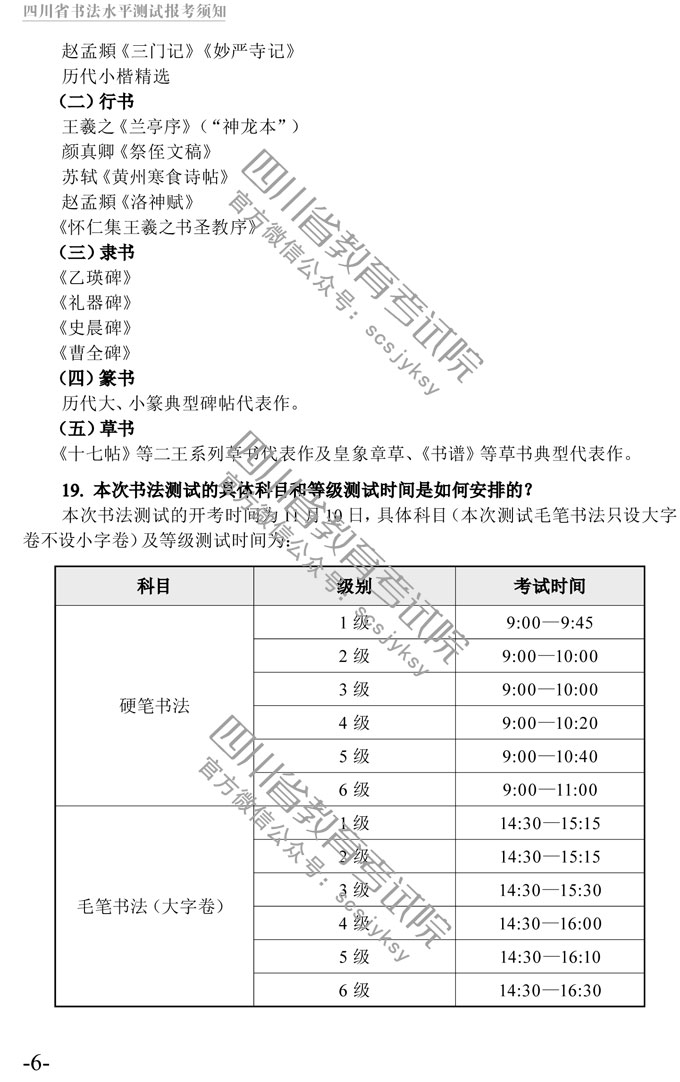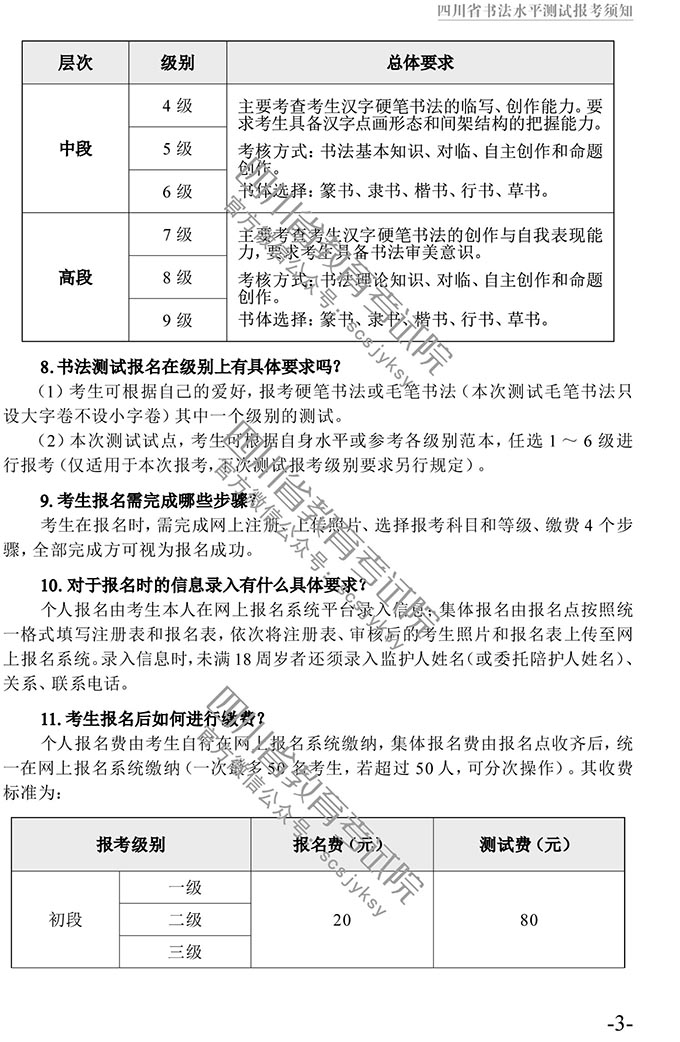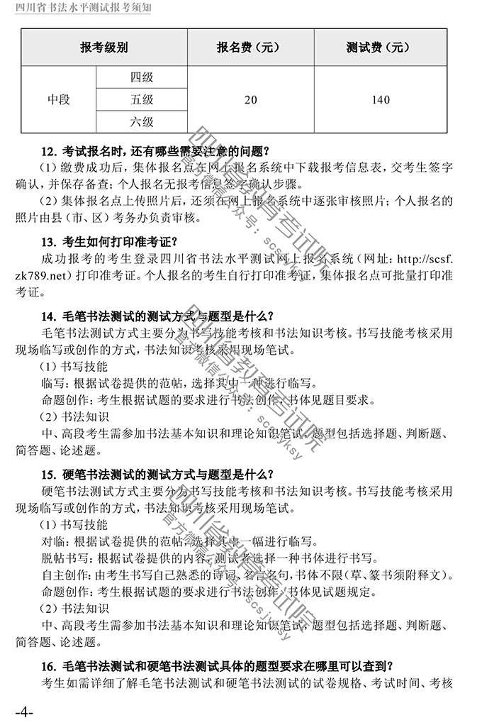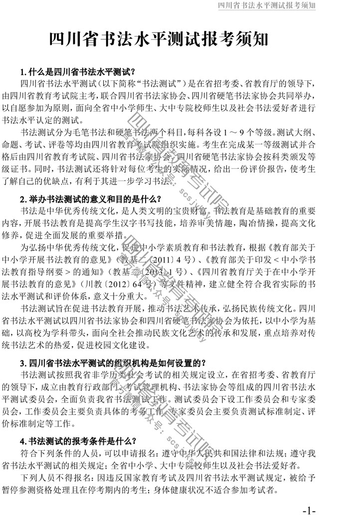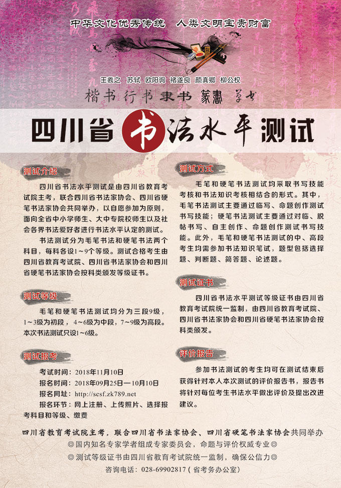 四川省书法水平测试报考须知