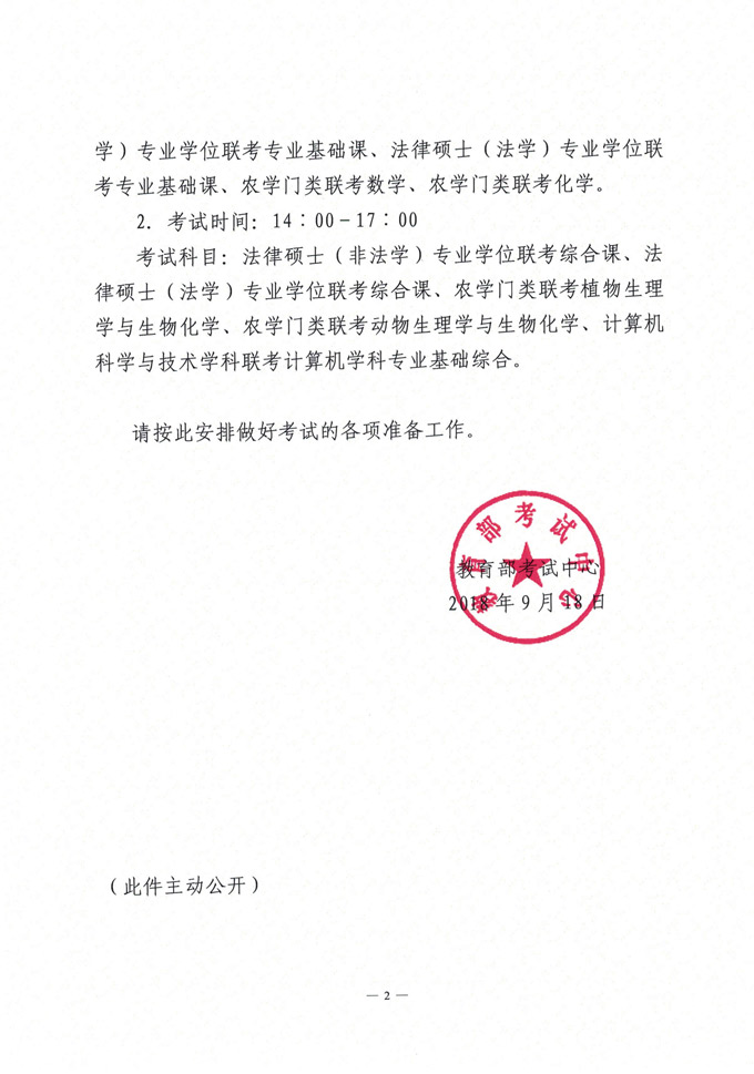 关于2019年全国硕士研究生招生考试初试全国统一命题科目考试时间安排的通知