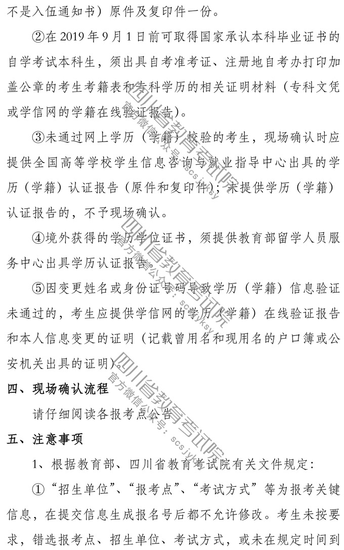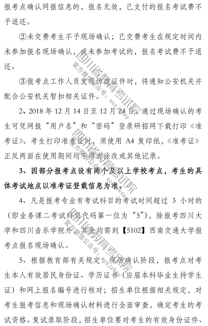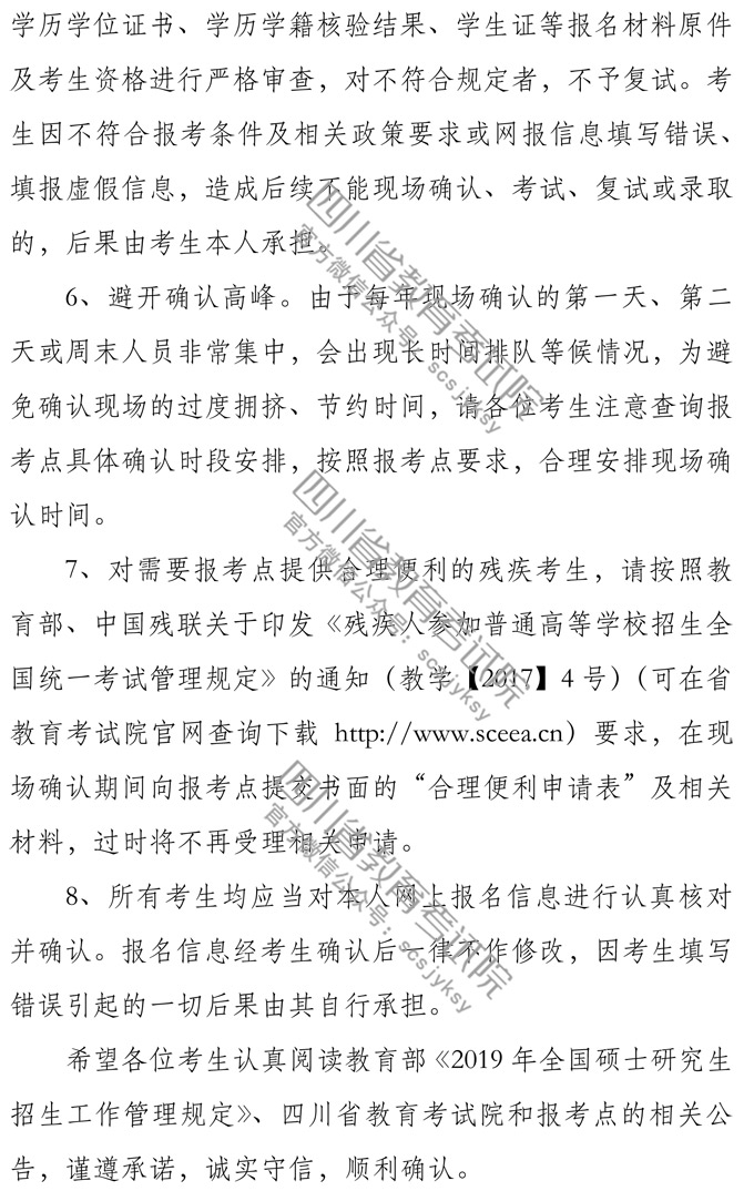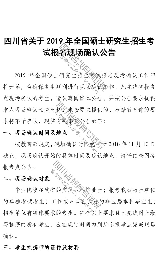 四川省关于2019年全国硕士研究生招生考试报名现场确认公告