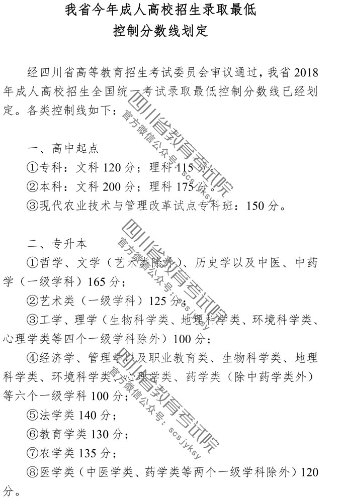 我省2018年成人高校招生录取最低控制分数线划定