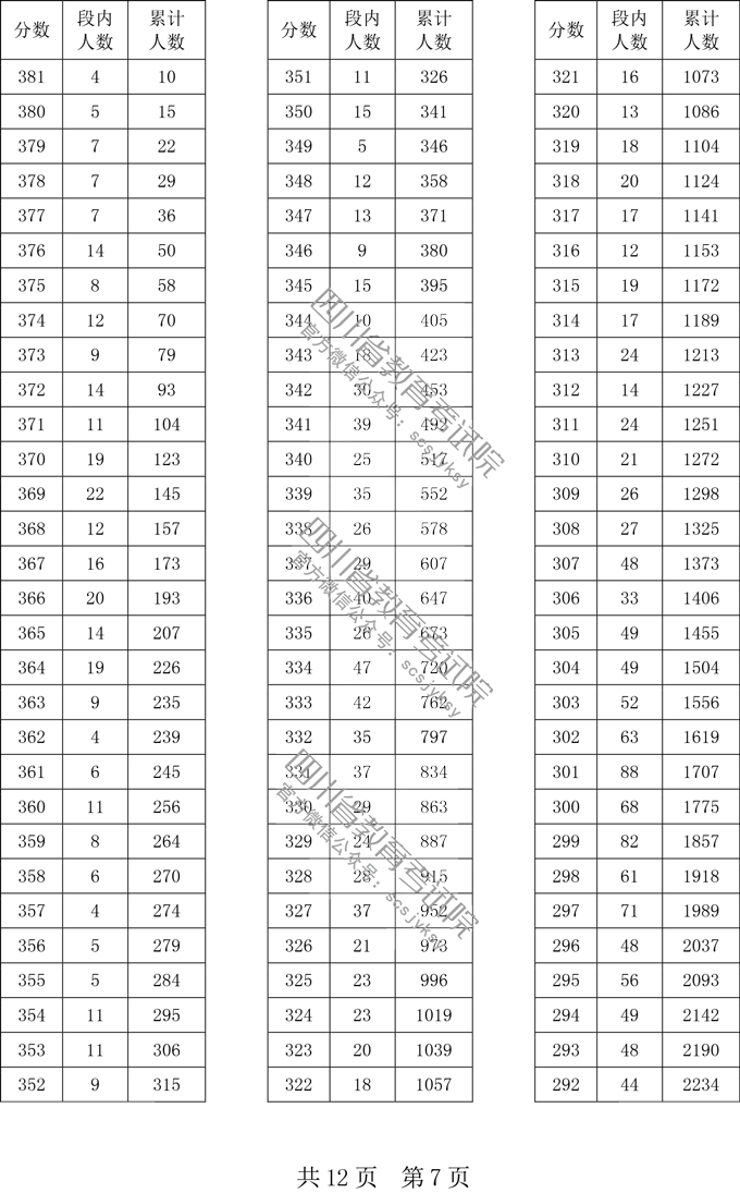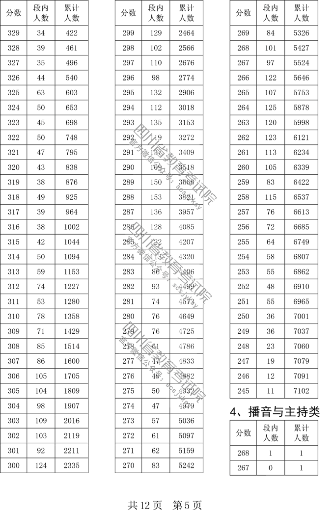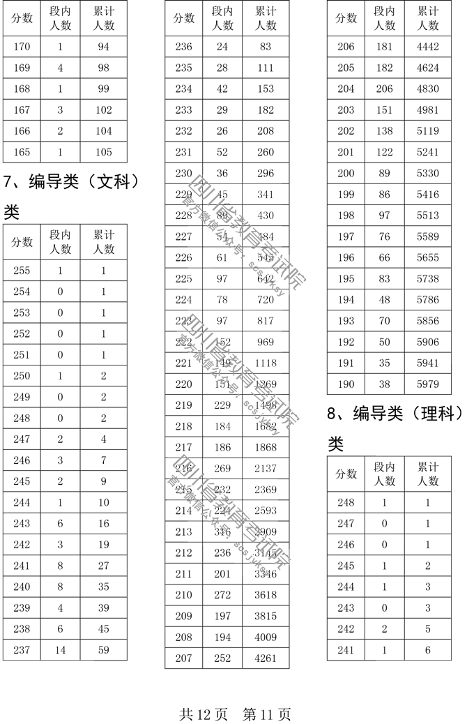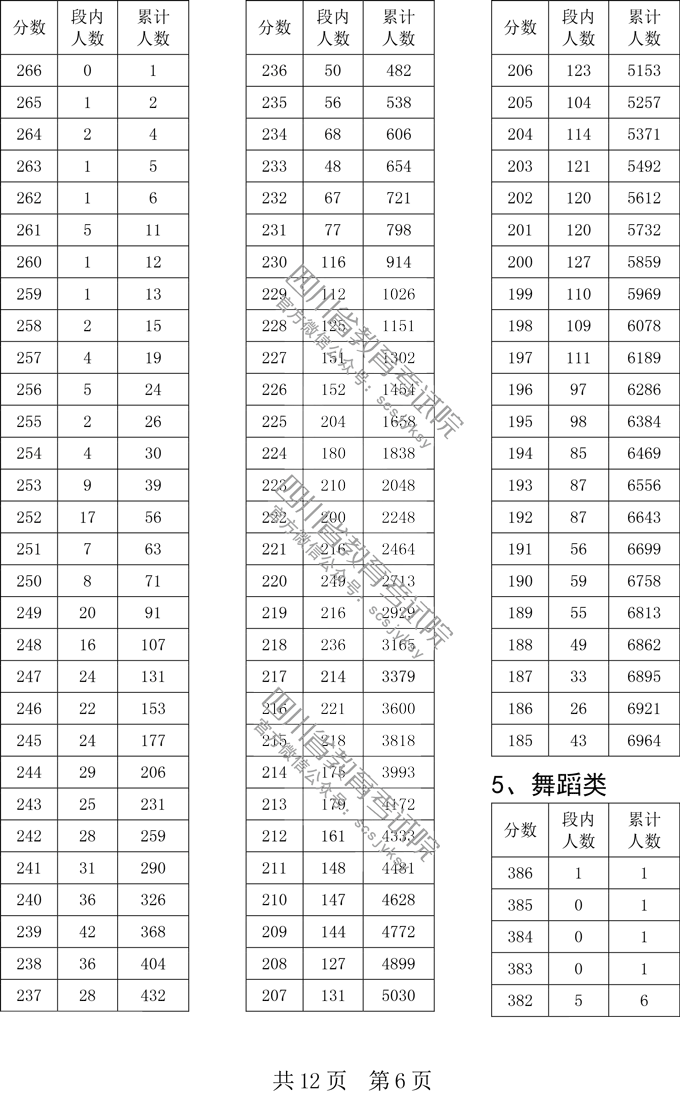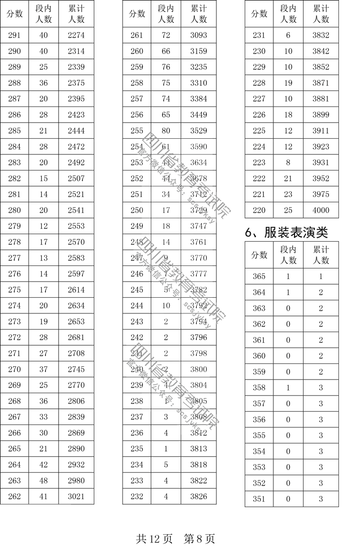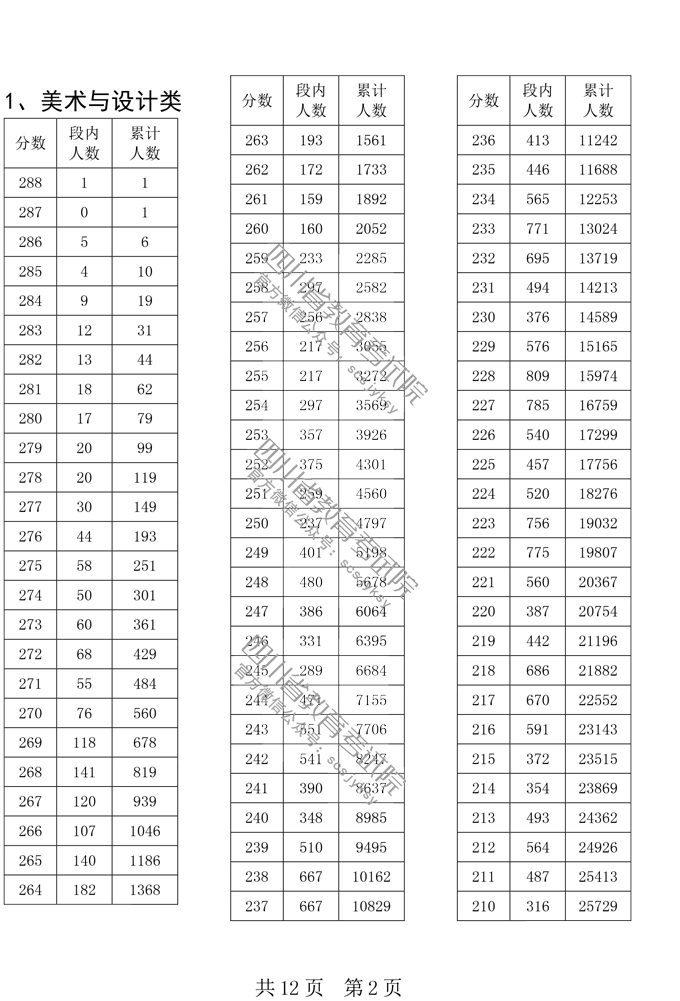 四川省2019年普通高校招生艺术类专业统考(美术与设计类、书法学、戏剧与影视类、舞蹈类)成绩一分段统计表
