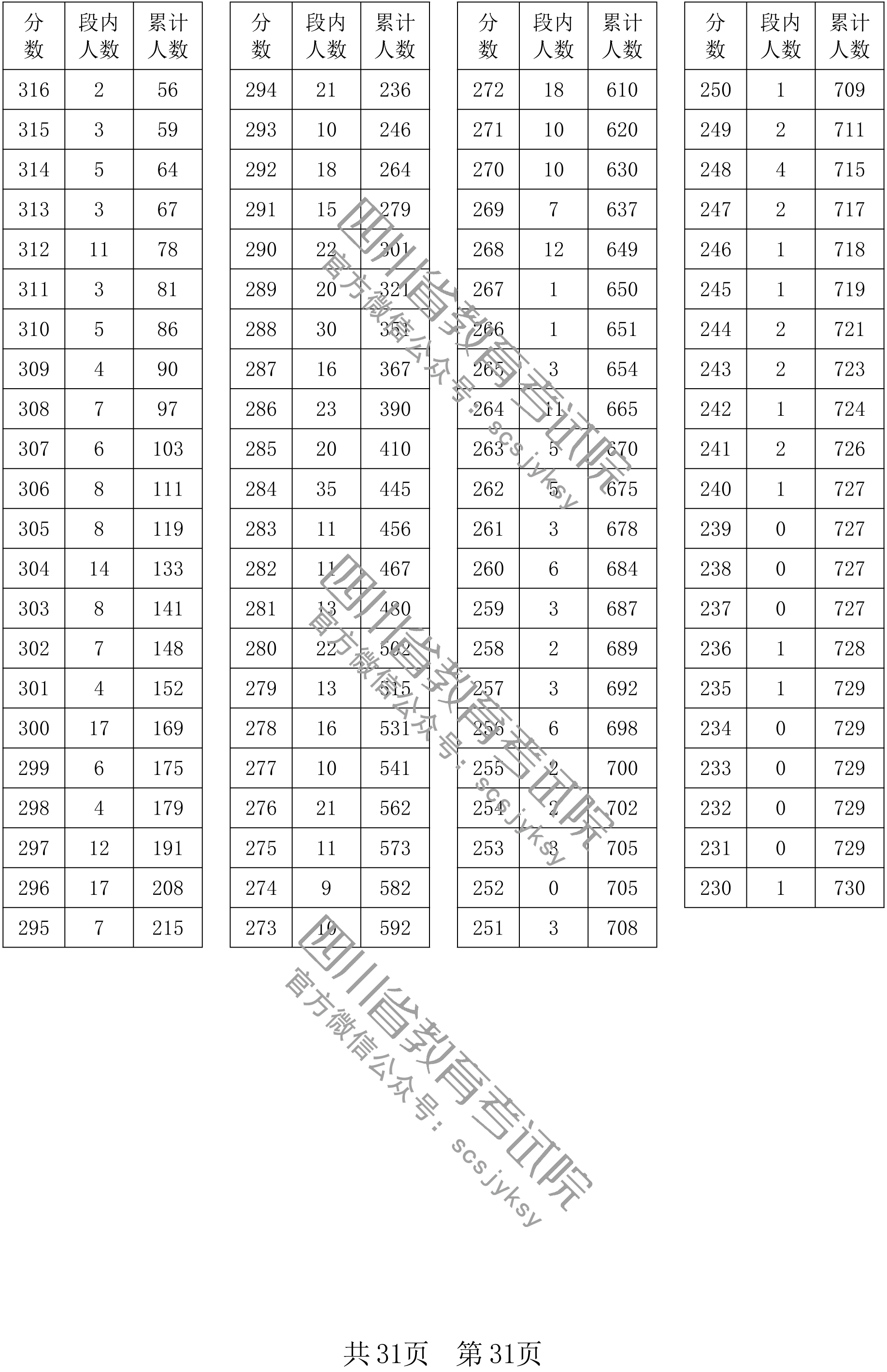 四川省2024年普通高校招生本科艺术类综合成绩、体育类专业成绩分段统计表