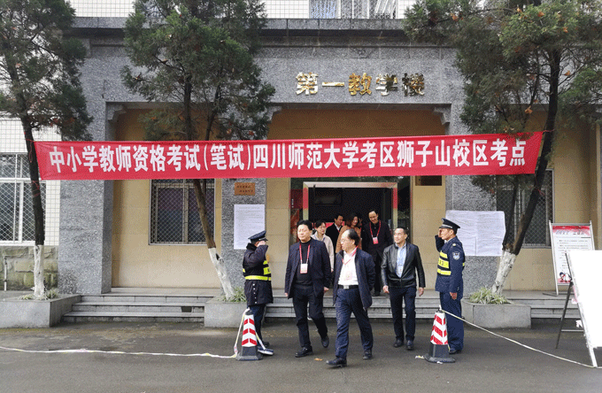 省教育厅、省教育考试院高度重视此次中小学教师资格考试(笔试)工作。考试期间,省委教育工委副书记、教育厅党组成员刘立云、省教育考试院党委书记丁念友、教育厅教师人事处处长寇昆仑一行,在成都考区、阿坝考区进行面上巡视。省教育考试院院长刘敏、省教育考试院党委委员王强及相关处室负责同志在省国家教育考试考务指挥中心,通过网络视频指挥系统对全省教师资格考试工作进行网上巡查和指导。