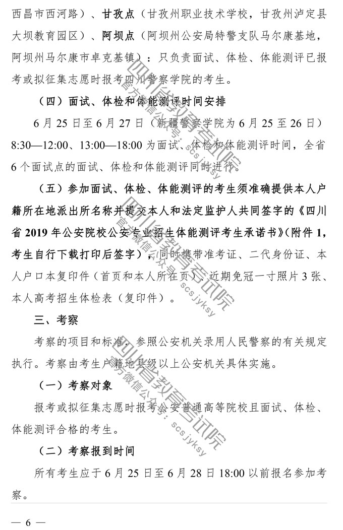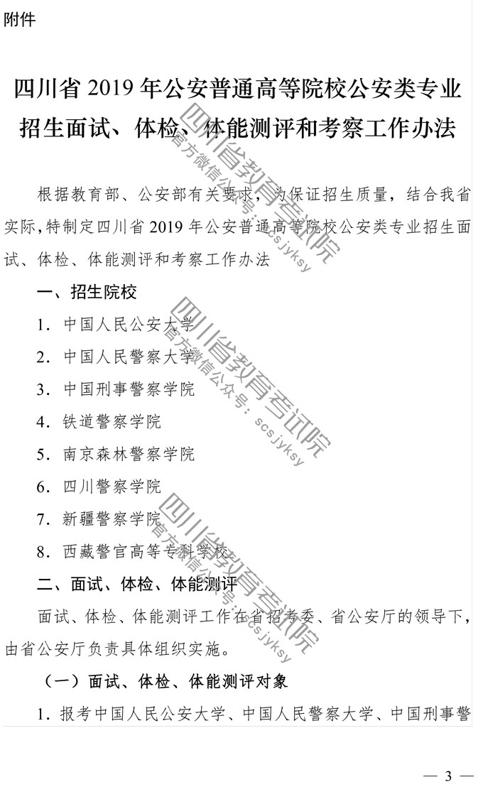 关于印发《四川省2019年公安普通高等院校公安类专业招生面试、体检、体能测评和考察工作办法》的通知