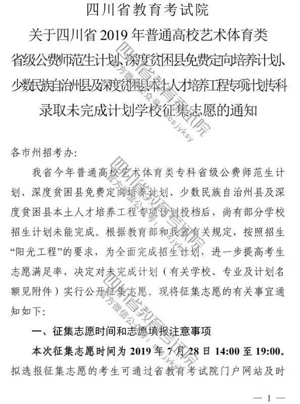 关于专科批征集志愿的通知(含文科计划)