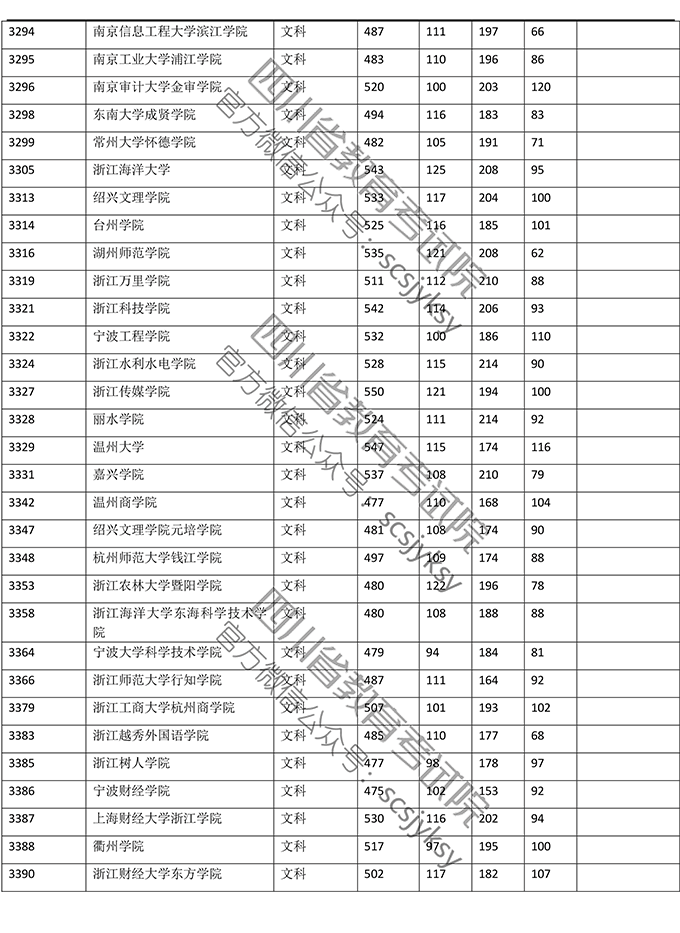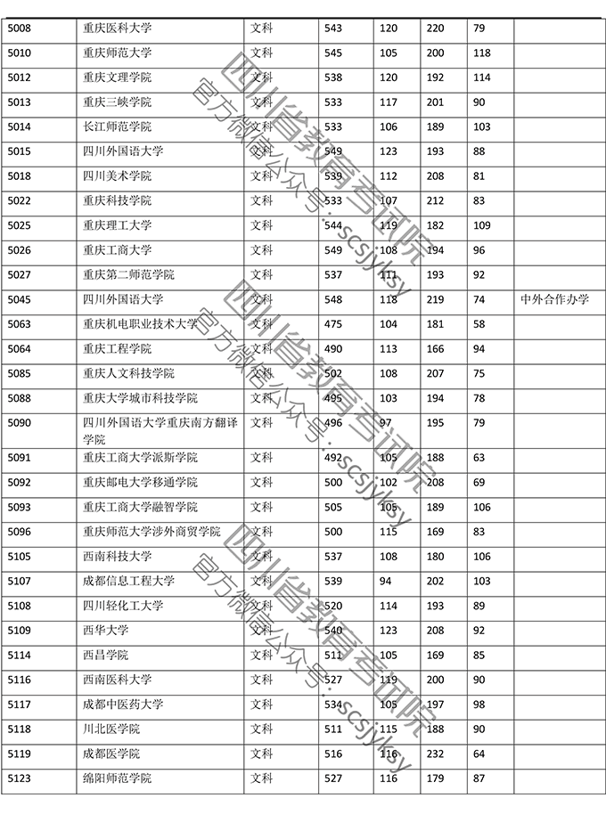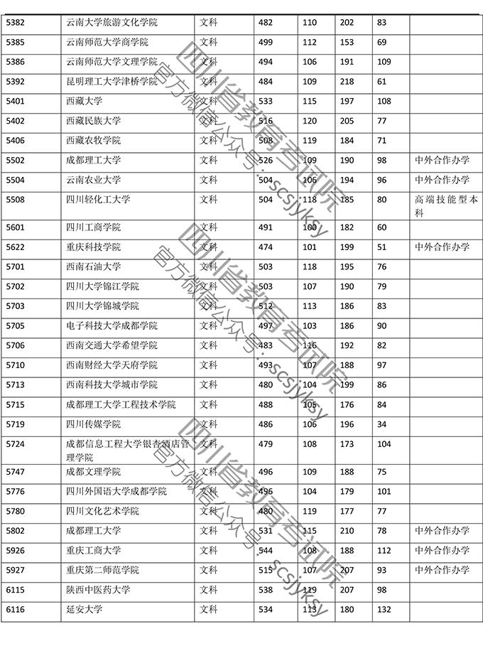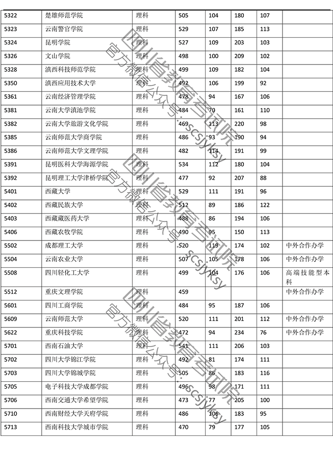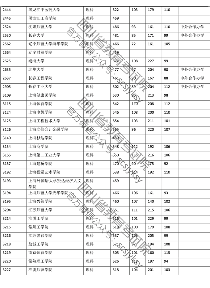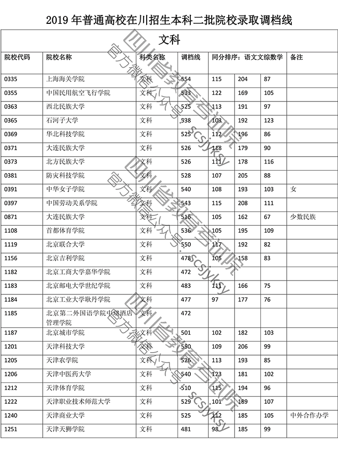 2019年普通高校在川招生本科二批院校录取调档线