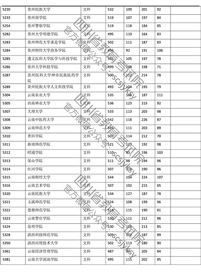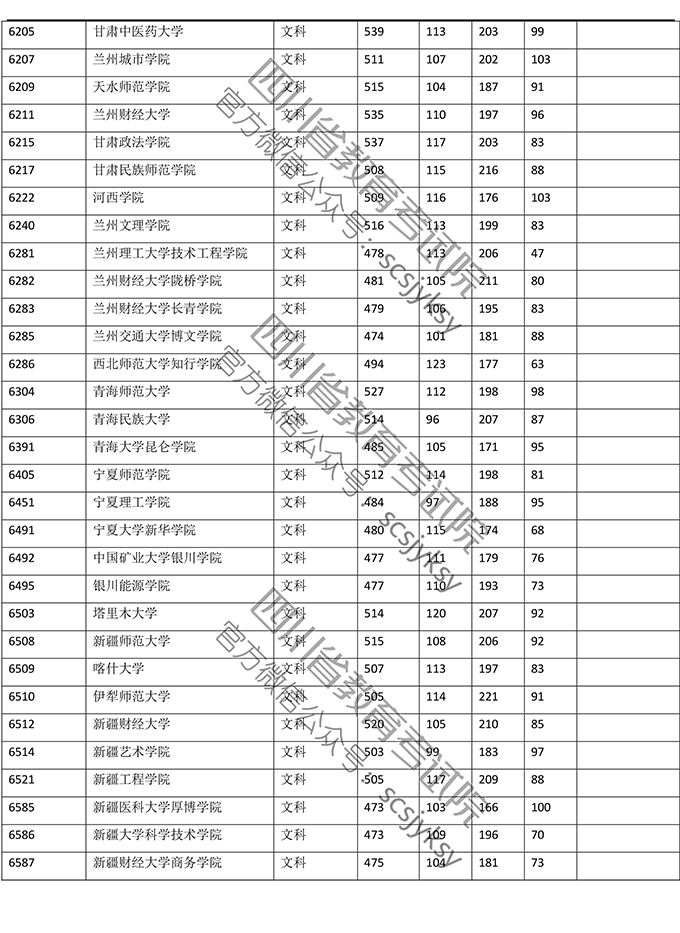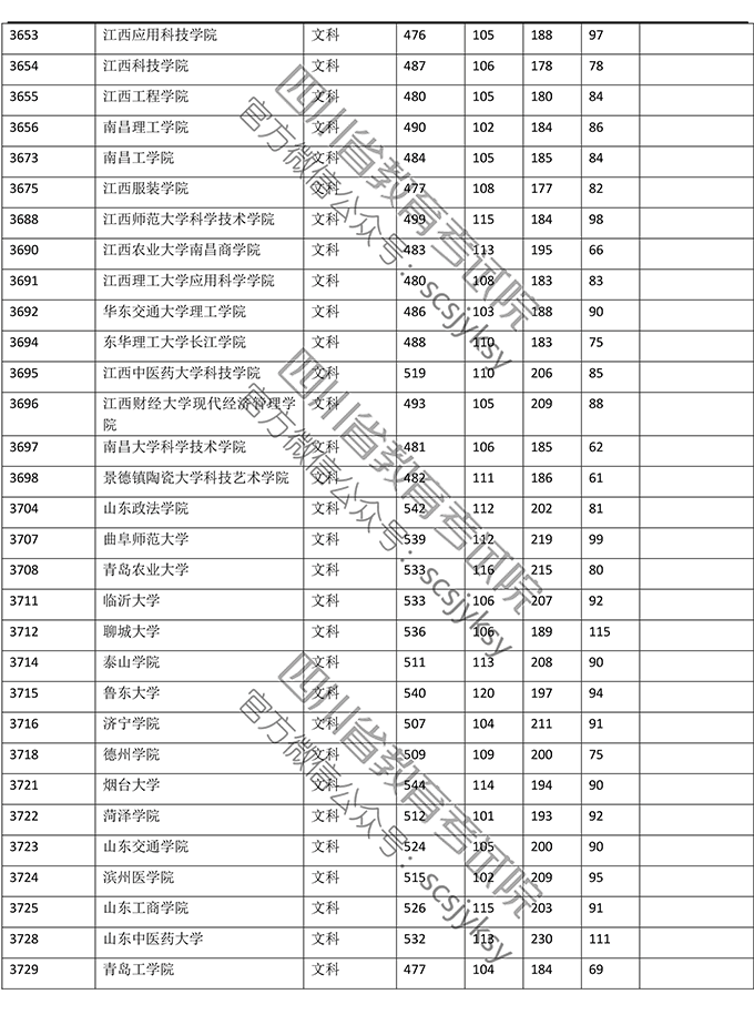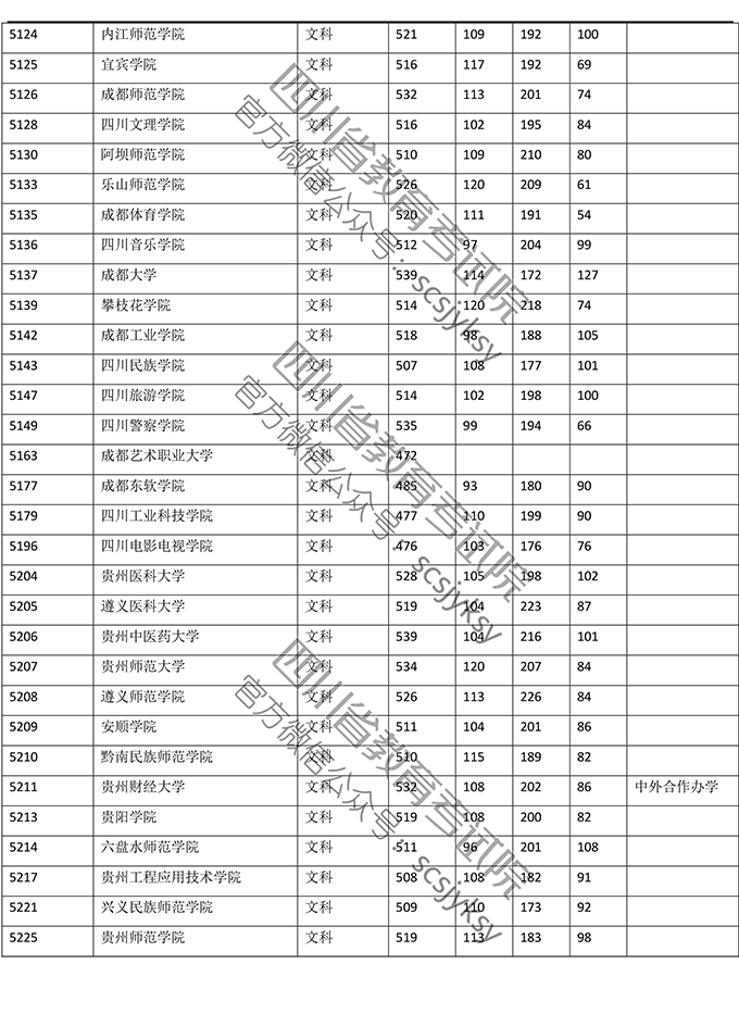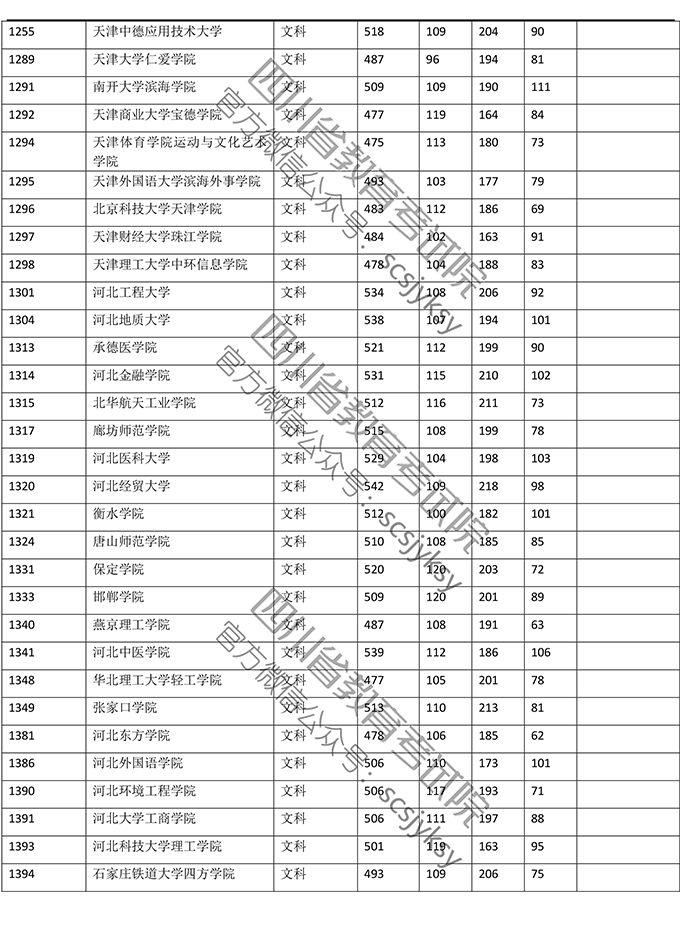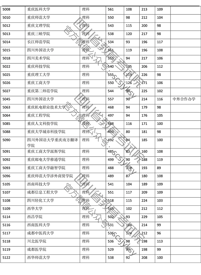 2019年普通高校在川招生本科二批院校录取调档线