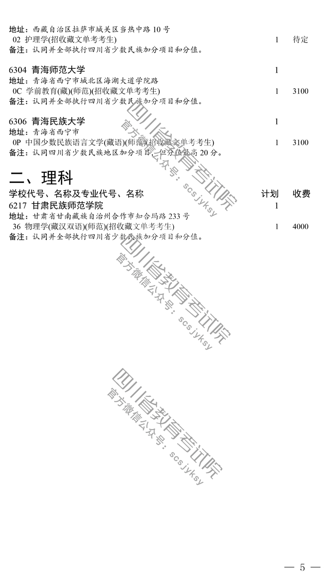 关于普通高校藏文、彝文一类模式本科第二批录取未完成计划院校征集志愿的通知
