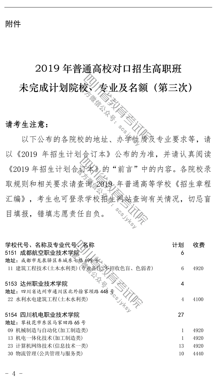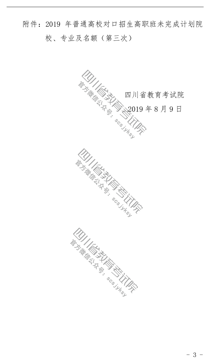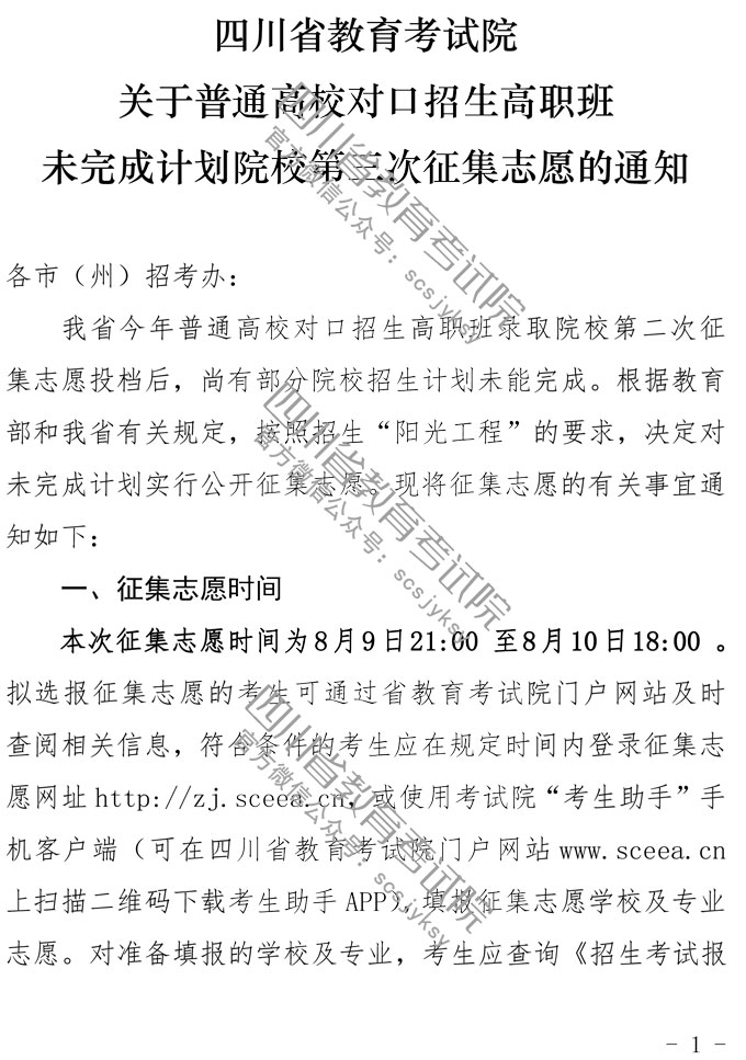关于普通高校对口招生高职班未完成计划院校第三次征集志愿的通知