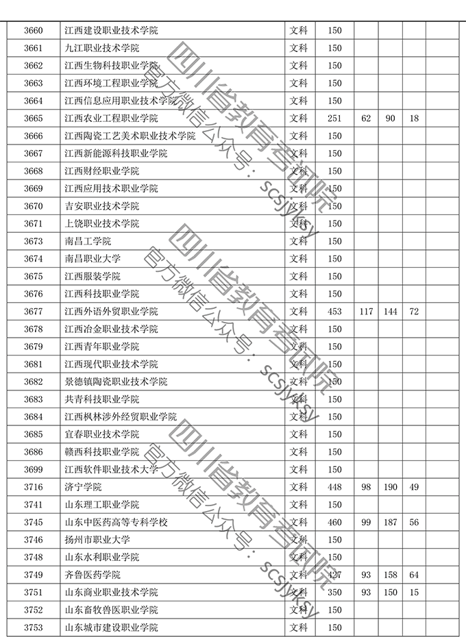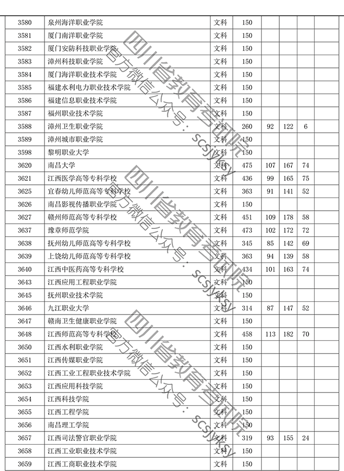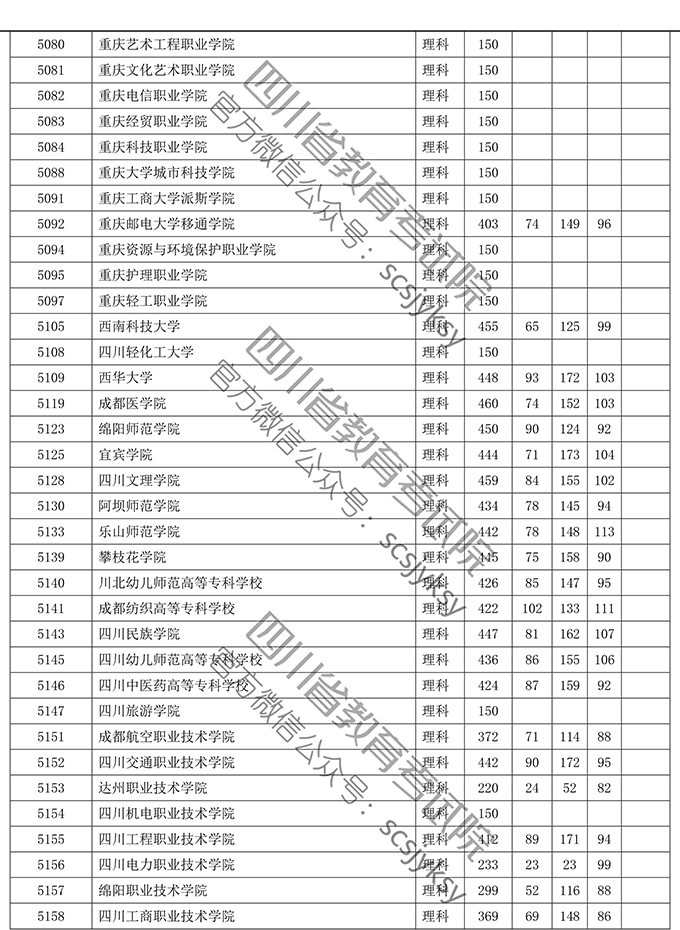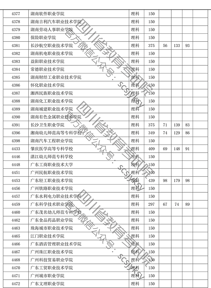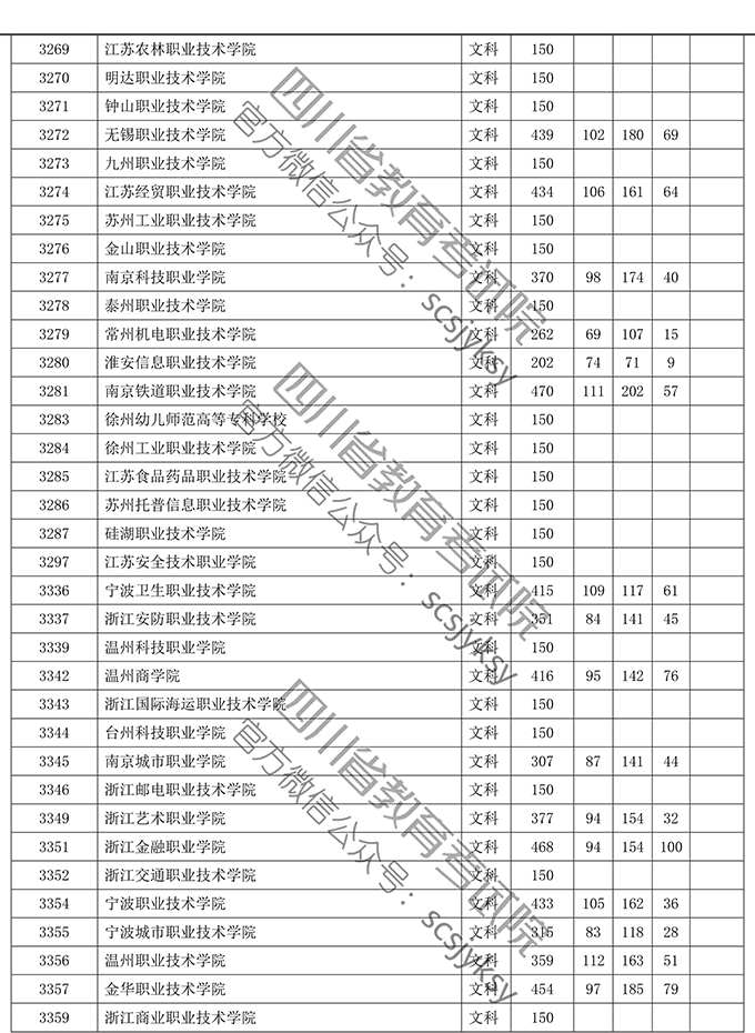 四川省2019年普通高等学校在川招生专科录取院校调档线