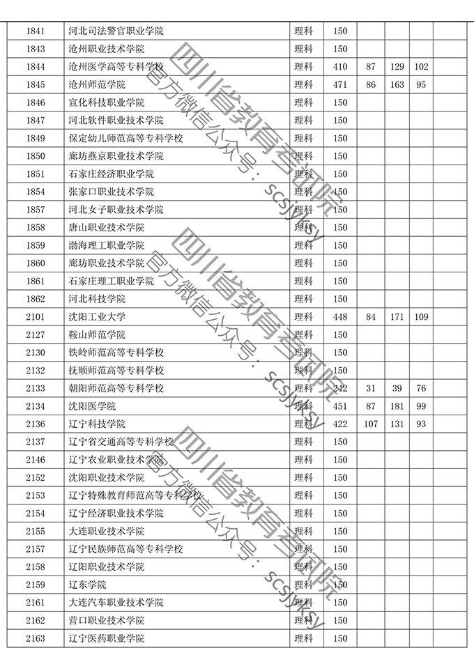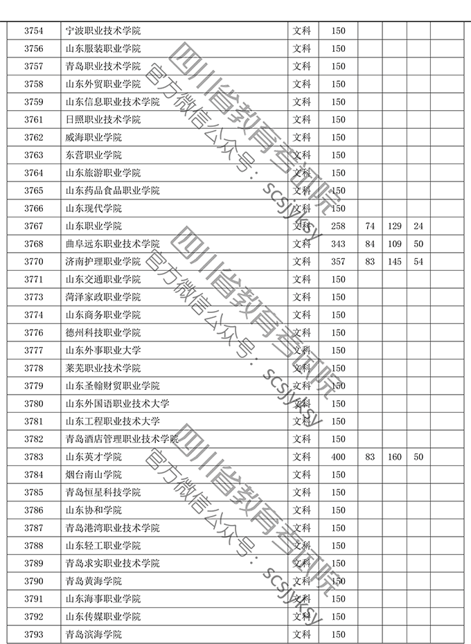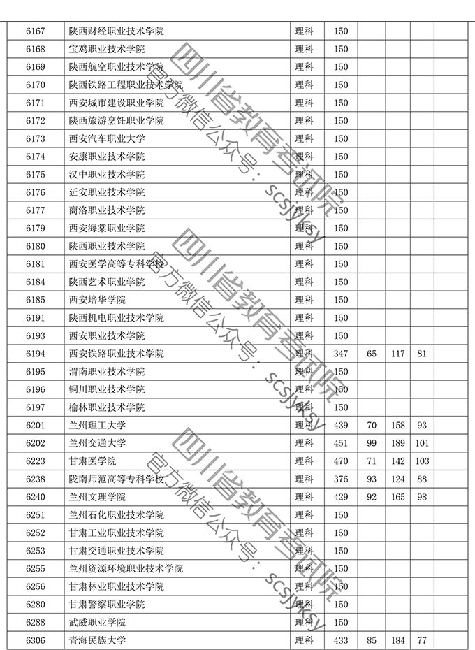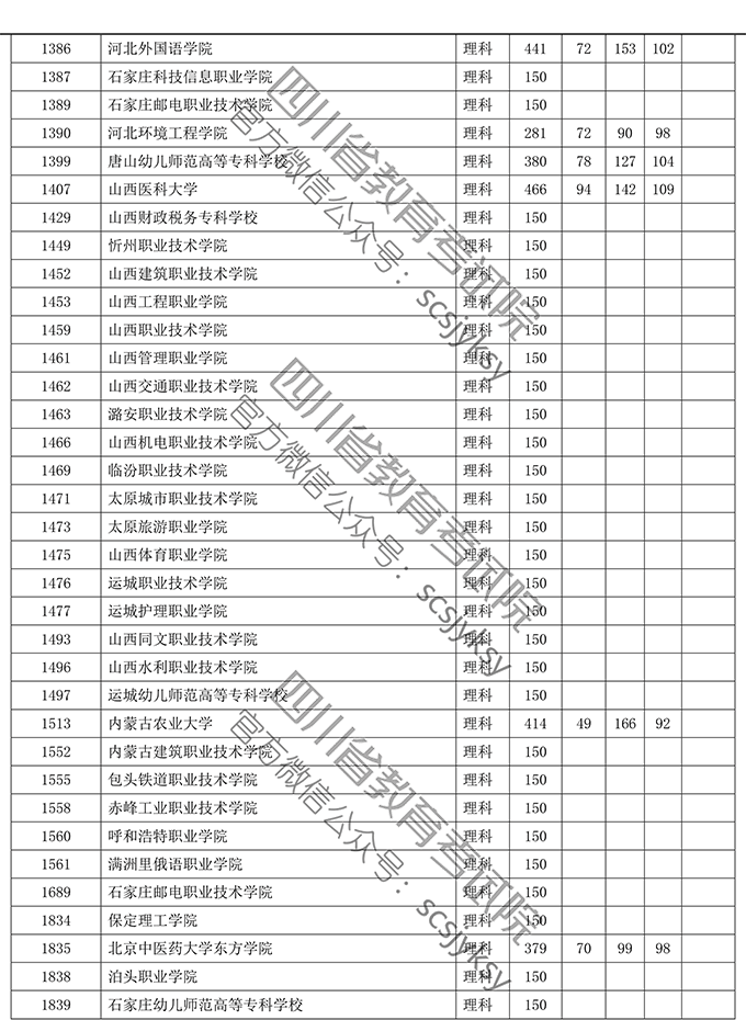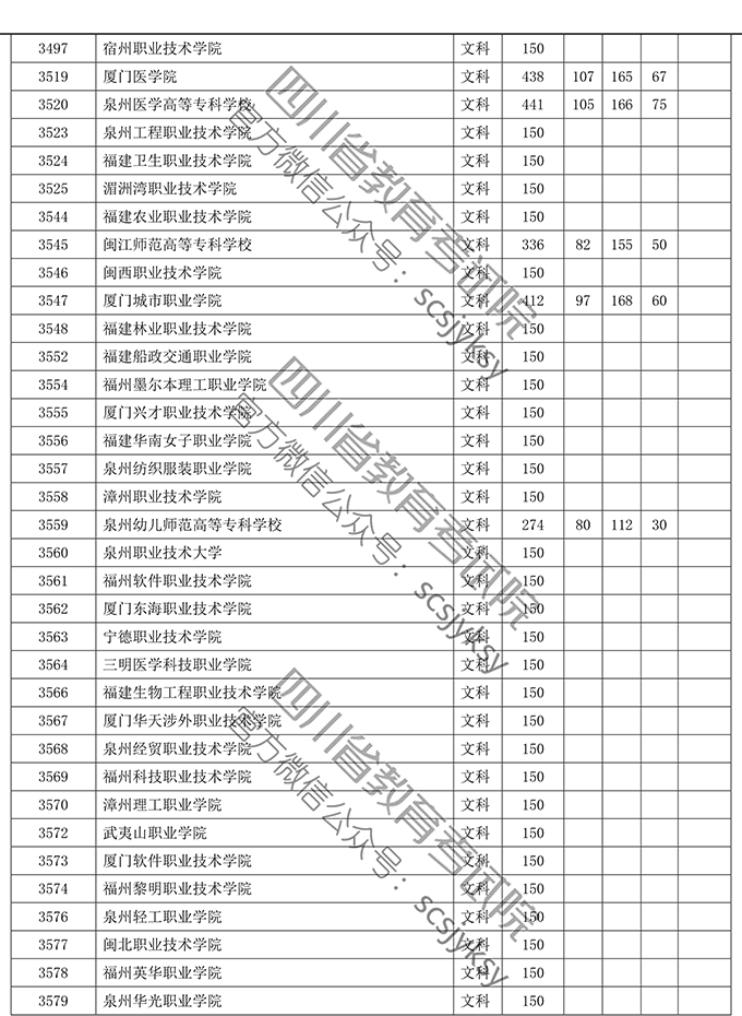 四川省2019年普通高等学校在川招生专科录取院校调档线