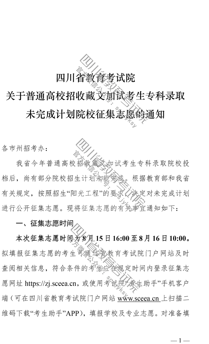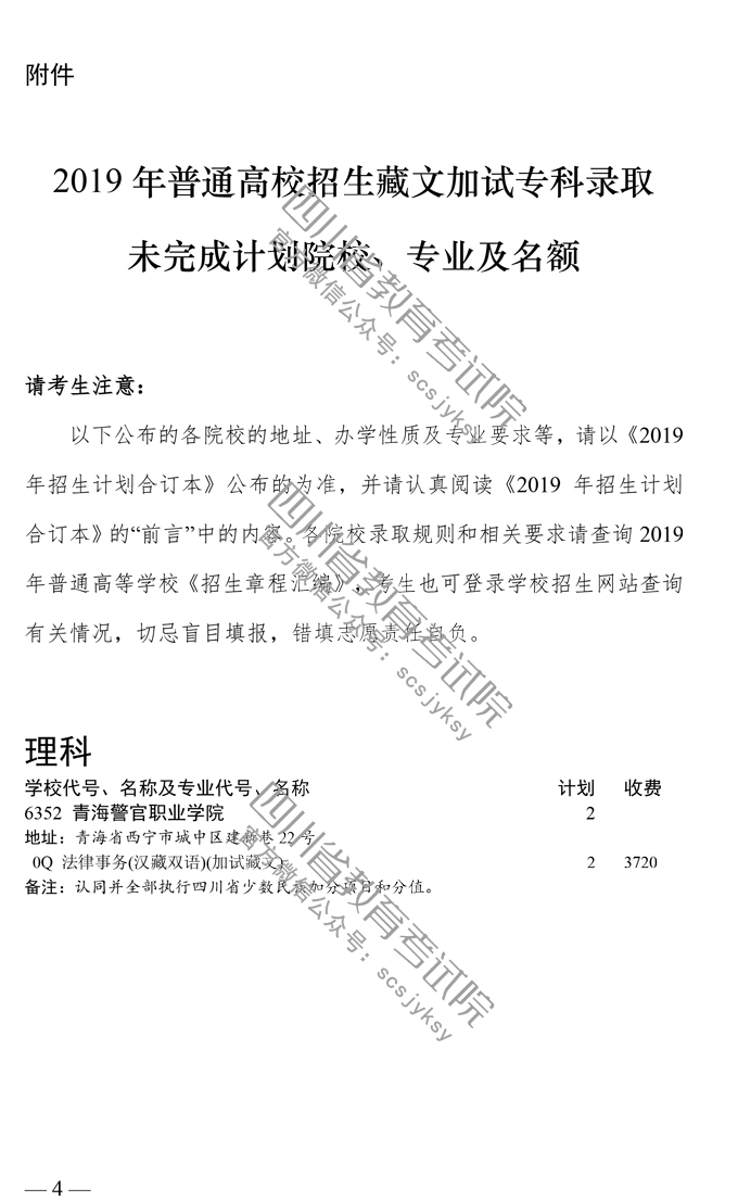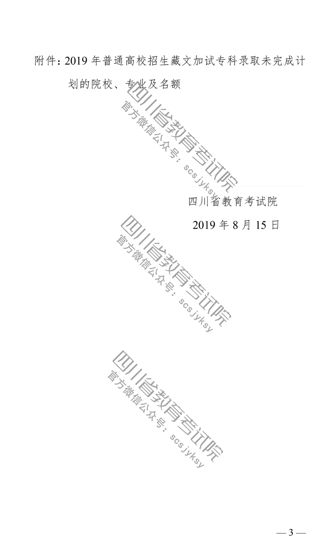 关于普通高校招收藏文加试考生专科录取未完成计划院校征集志愿的通知
