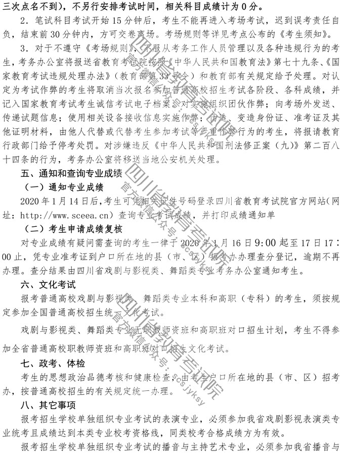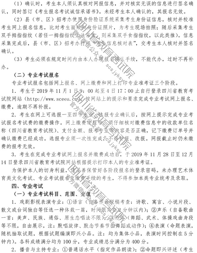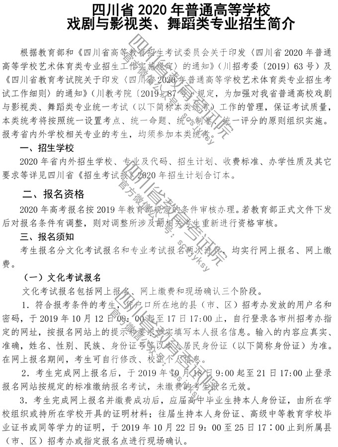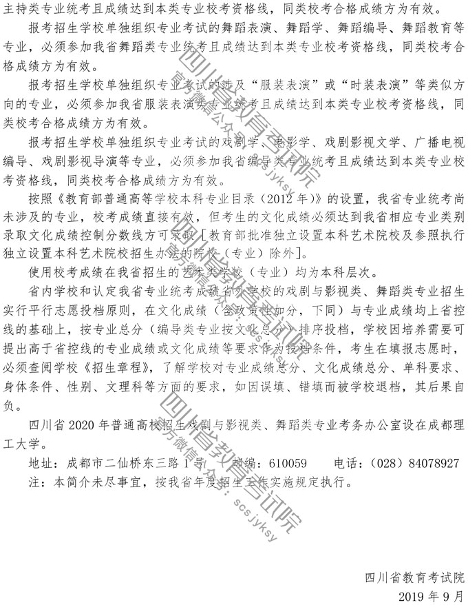 四川省2020年普通高等学校戏剧与影视类、舞蹈类专业招生简介