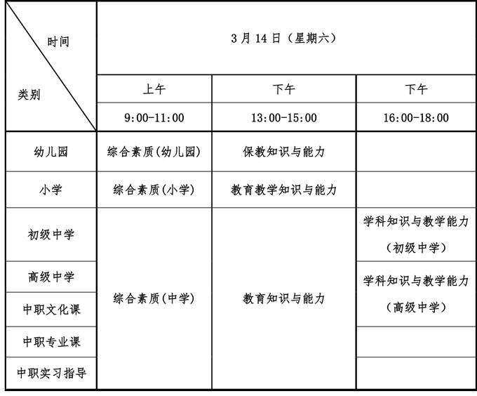 (二)考试时间:2020314日。所有科目考试均采用纸笔方式进行,具体安排如下: