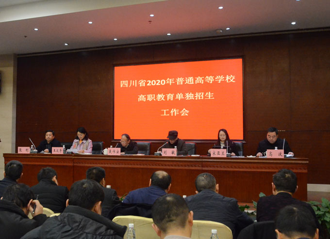 2020年1月10日,我省2020年普通高等学校高职教育单独招生部署工作会议在成都举行。省招考委副主任、省教育厅副厅长戴作安出席会议并讲话,会议由省教育考试院院长刘敏主持。