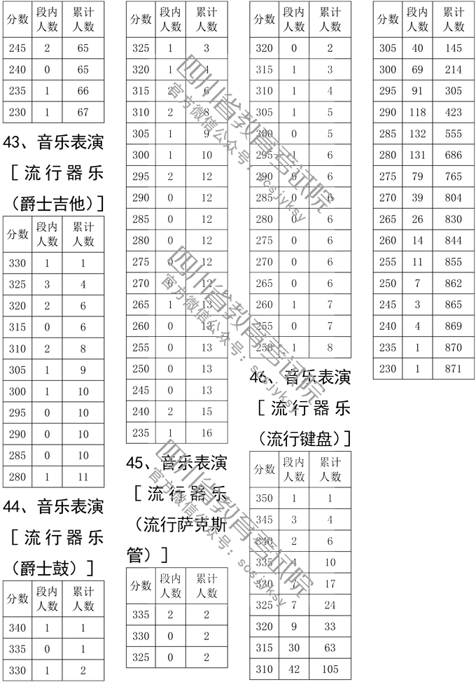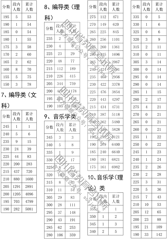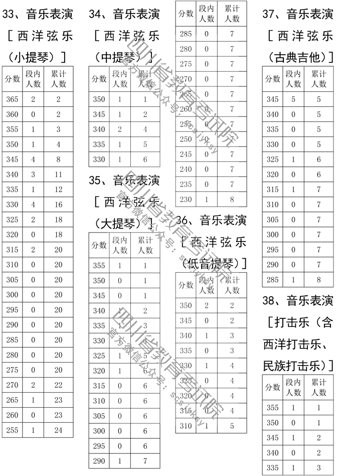四川省2020年普通高校招生艺术类专业统考成绩五分段统计表