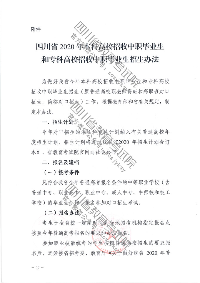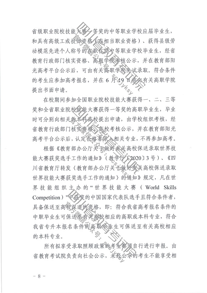 关于印发《四川省2020年本科高校招收中职毕业生和专科高校招收中职毕业生的招生办法》通知