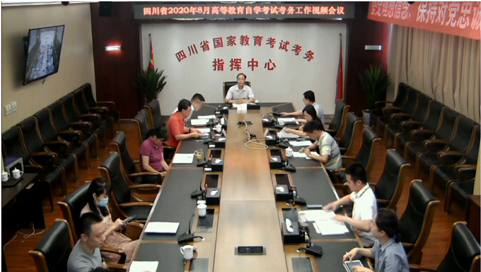 7月17日下午,2020年8月四川省高等教育自学考试考务工作视频会议召开,对8月自考进行再动员、再部署、再培训。本次会议主会场设在四川省国家教育考试考务指挥中心,各市(州)设分会场,省教育考试院党委书记丁念友出席会议并讲话,会议由省教育考试院党委副书记舒欣主持。