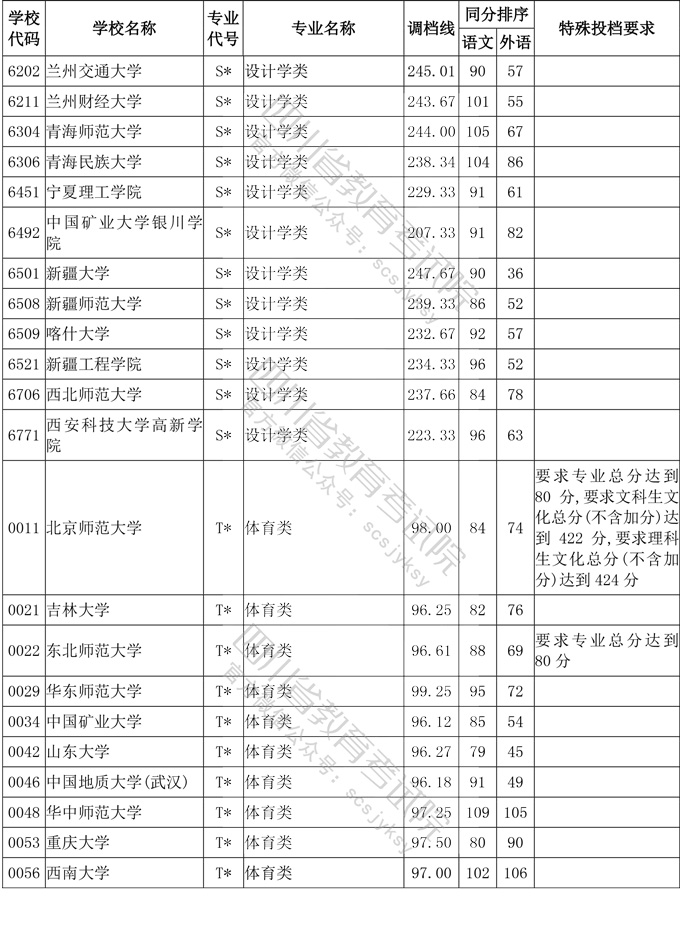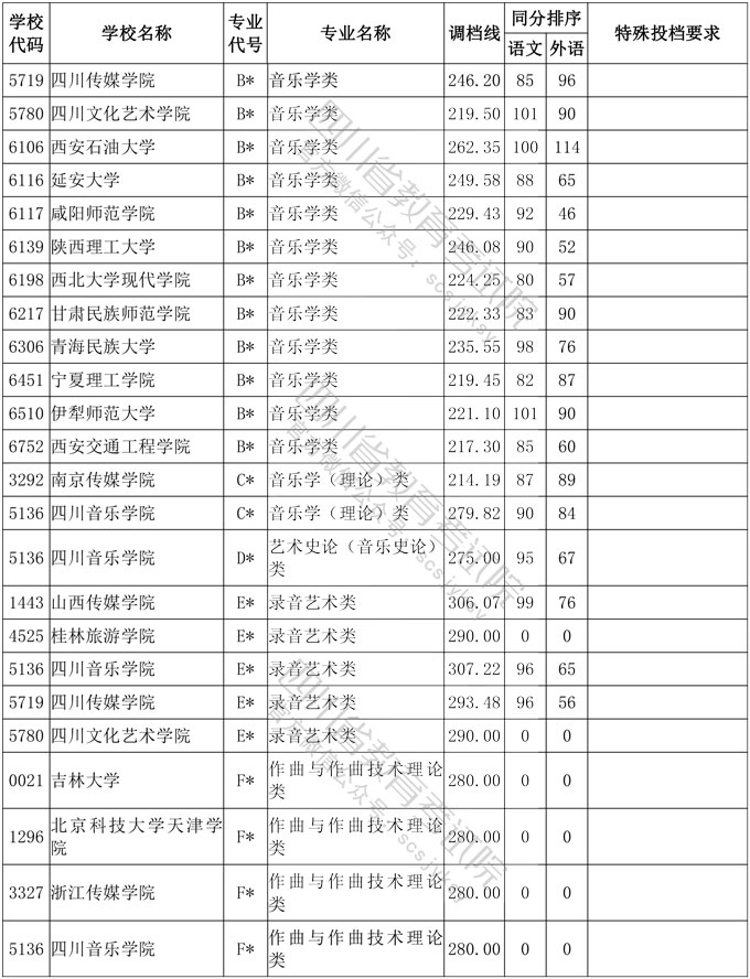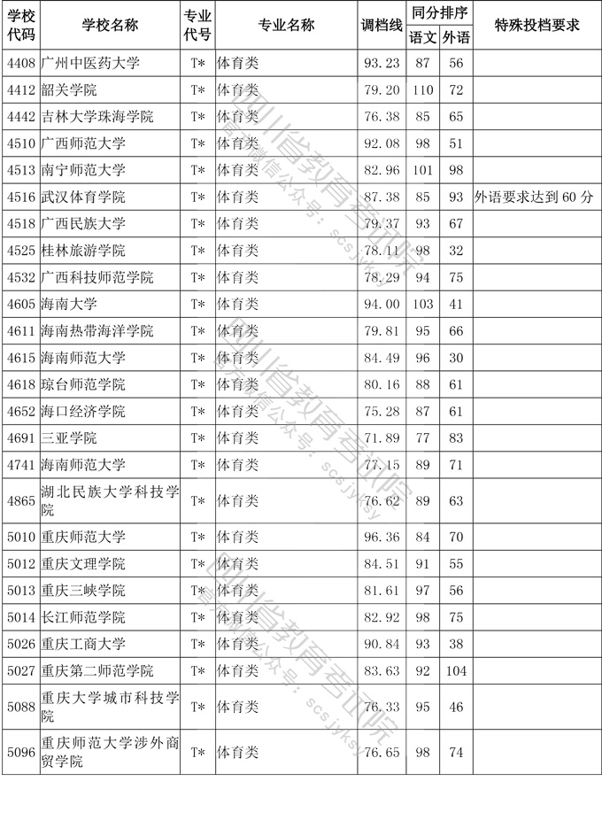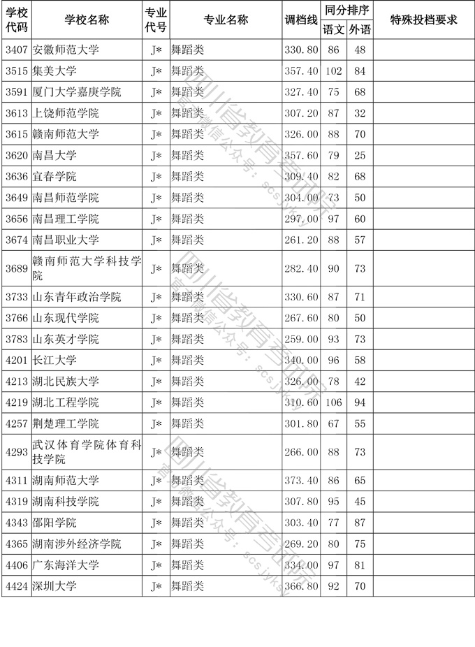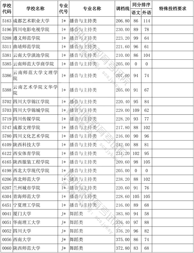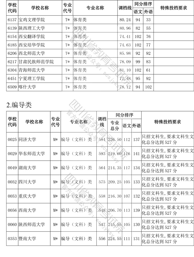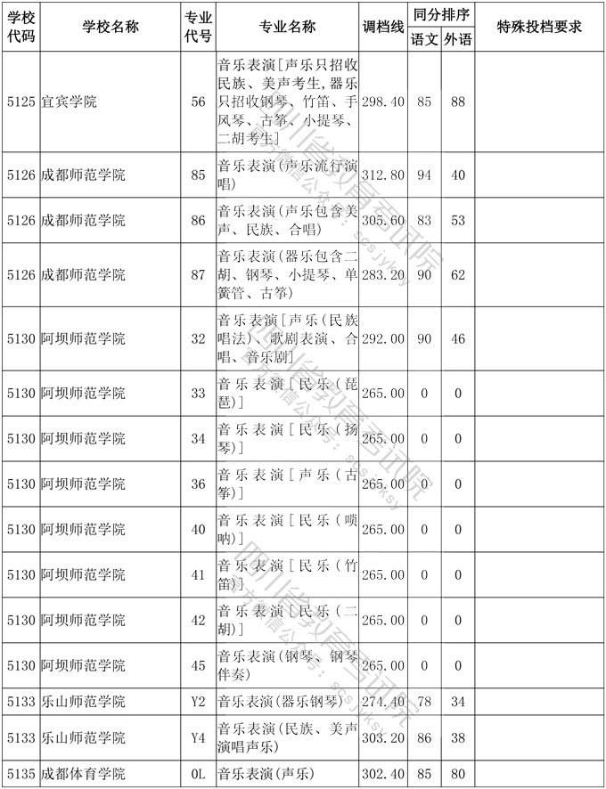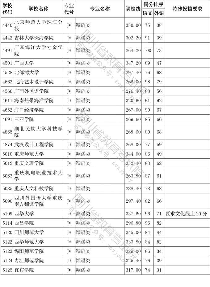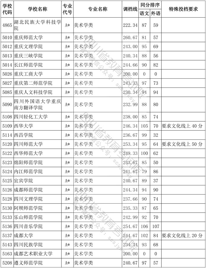 四川省2020年普通高等学校艺术体育类专业招生艺术类本科第一批、体育类本科批调档线