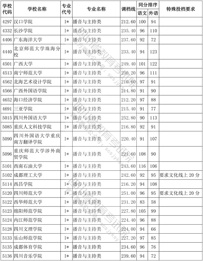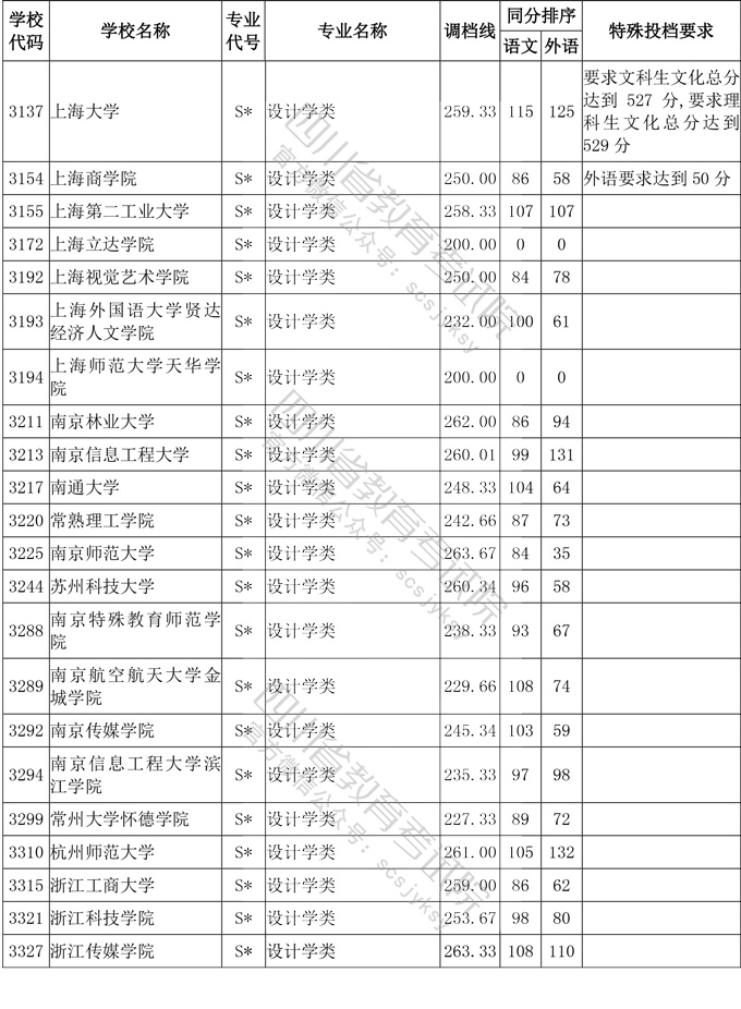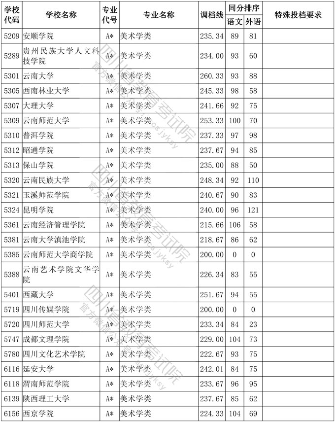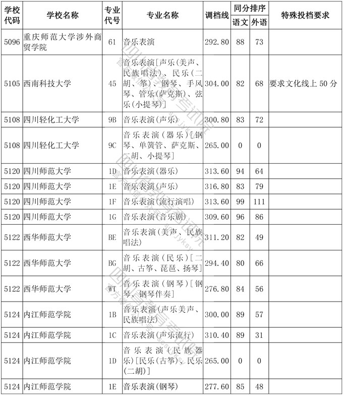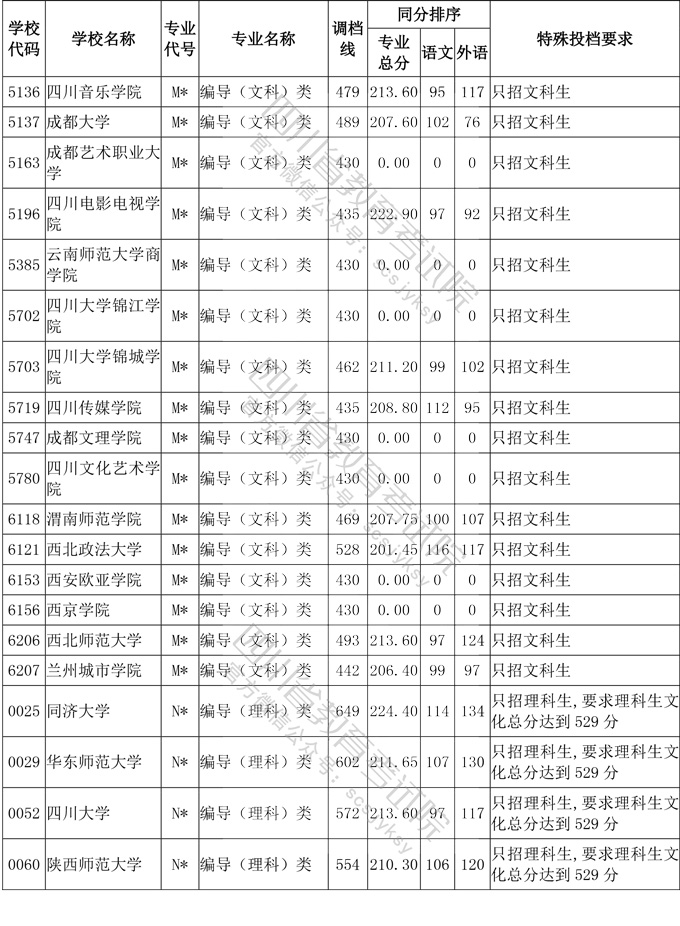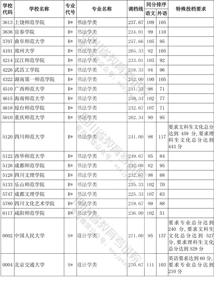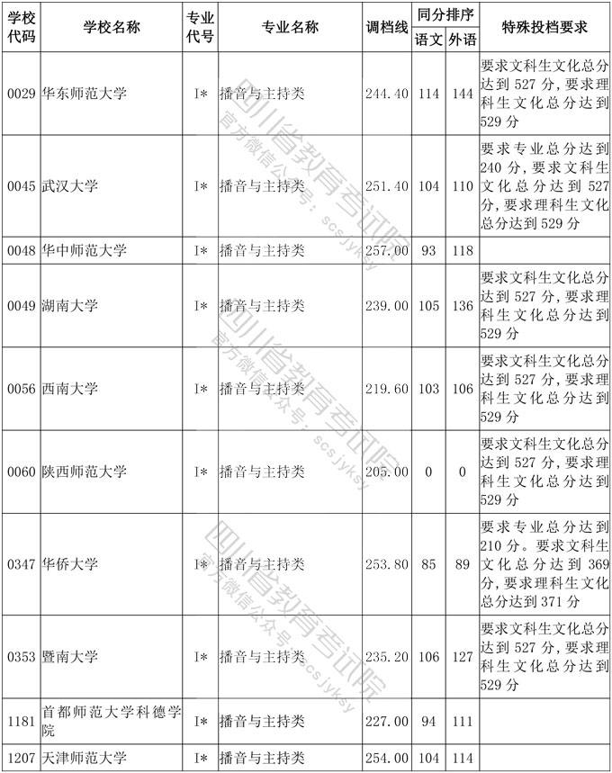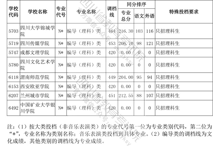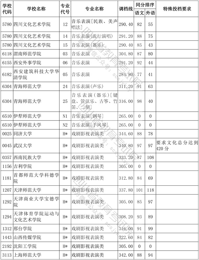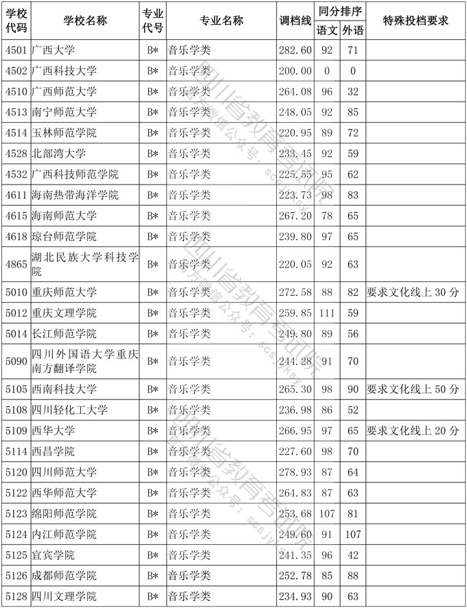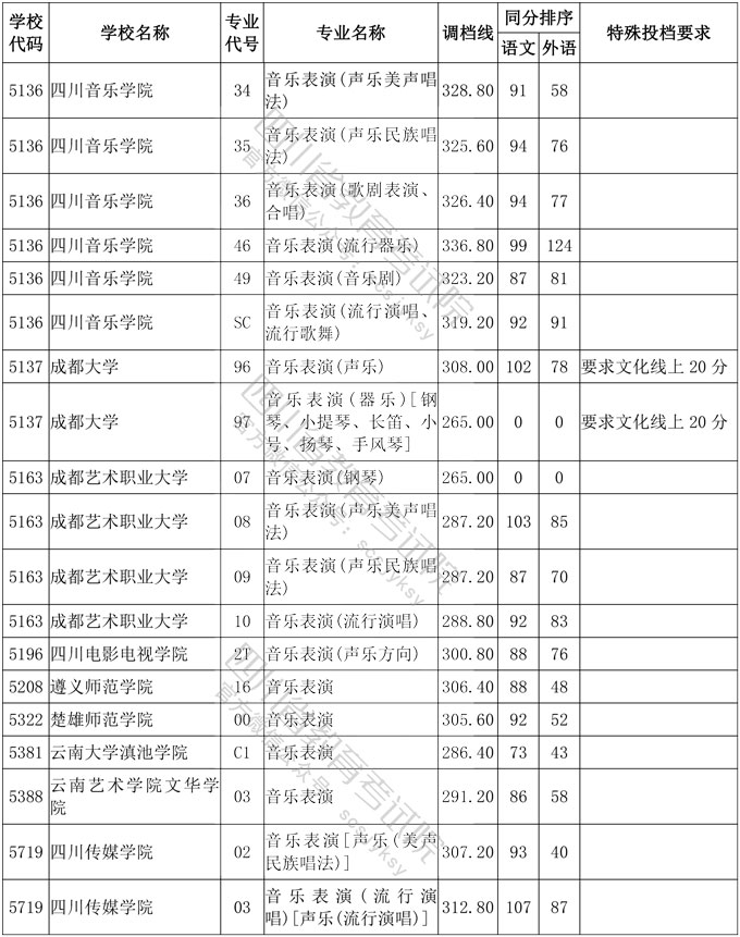 四川省2020年普通高等学校艺术体育类专业招生艺术类本科第一批、体育类本科批调档线