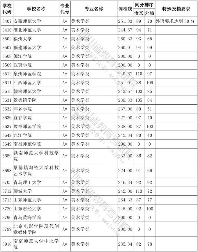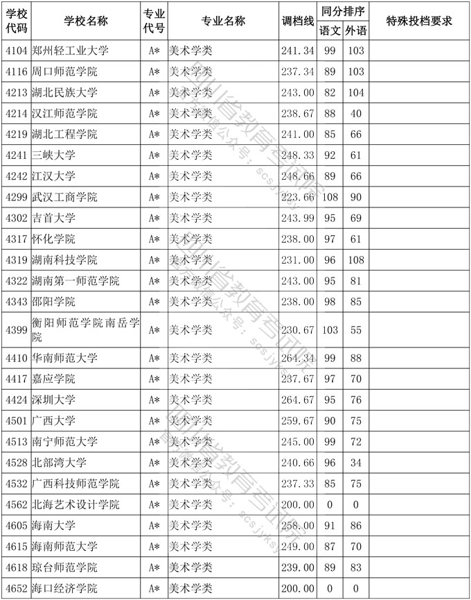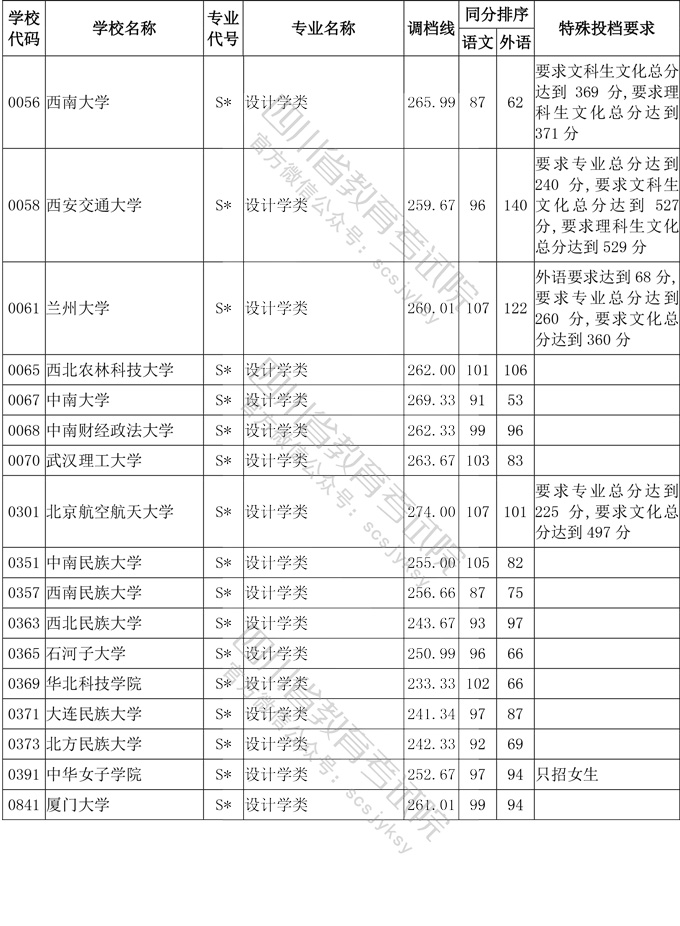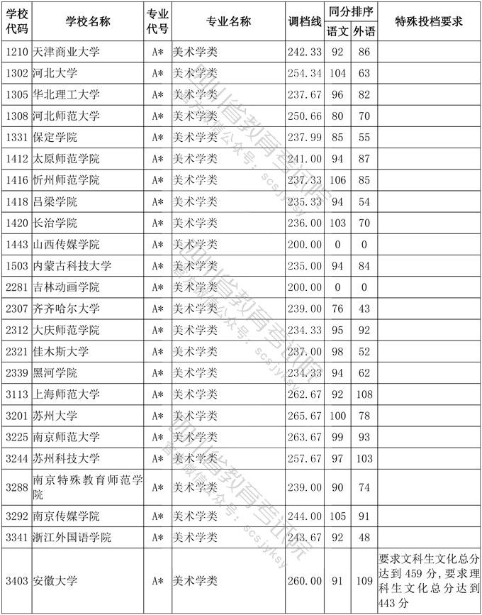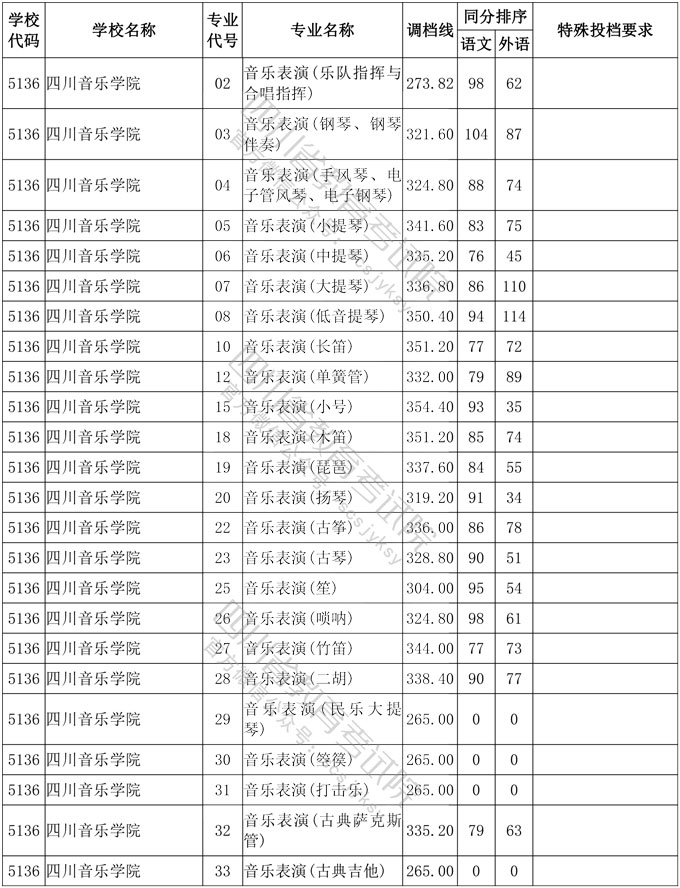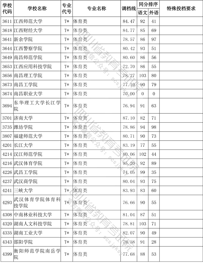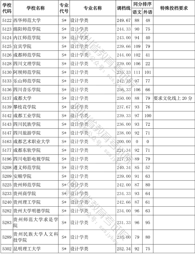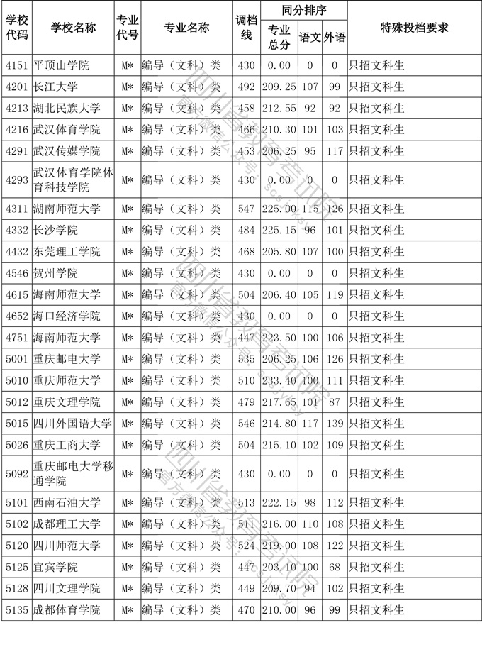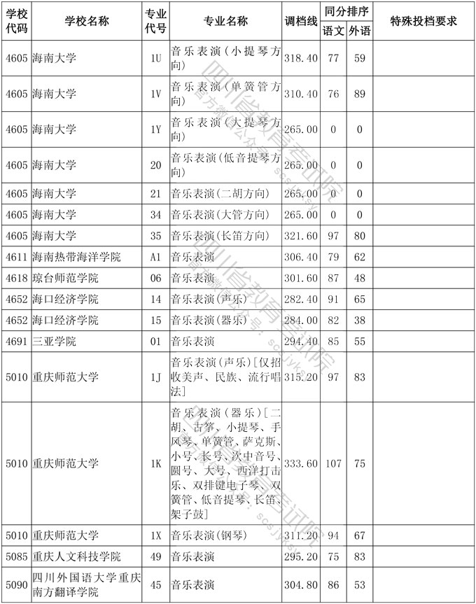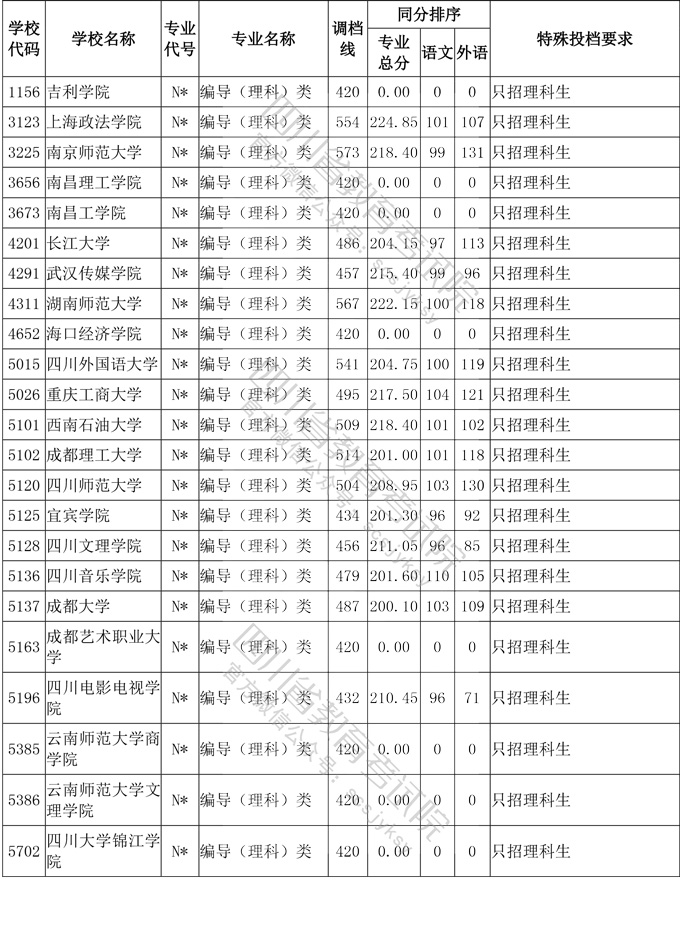 四川省2020年普通高等学校艺术体育类专业招生艺术类本科第一批、体育类本科批调档线