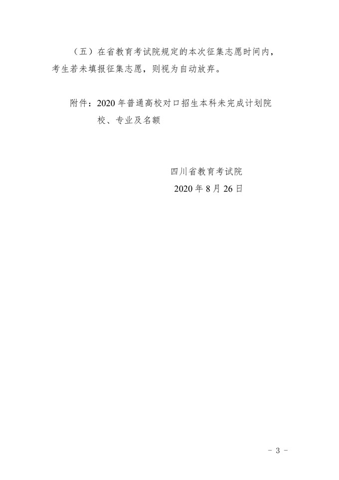 关于普通高校对口招生本科录取未完成计划高校征集志愿的通知