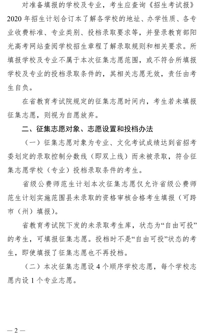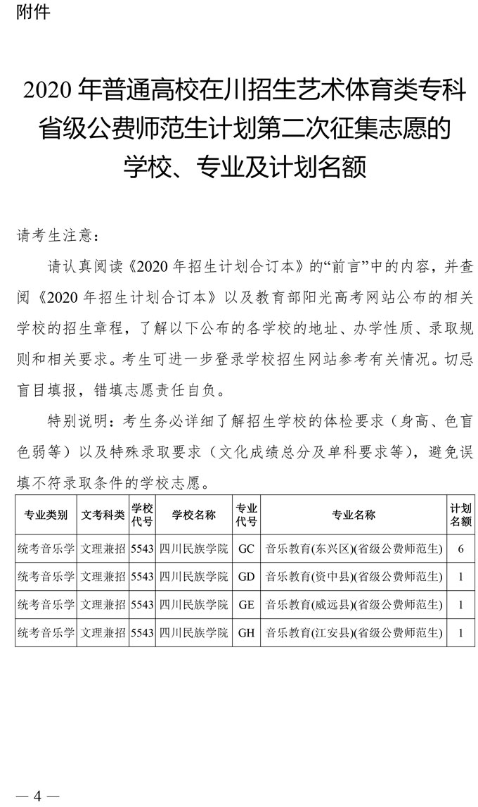 关于四川省2020年普通高校招生艺术体育类专科省级公费师范生录取学校未完成计划第二次征集志愿的通知