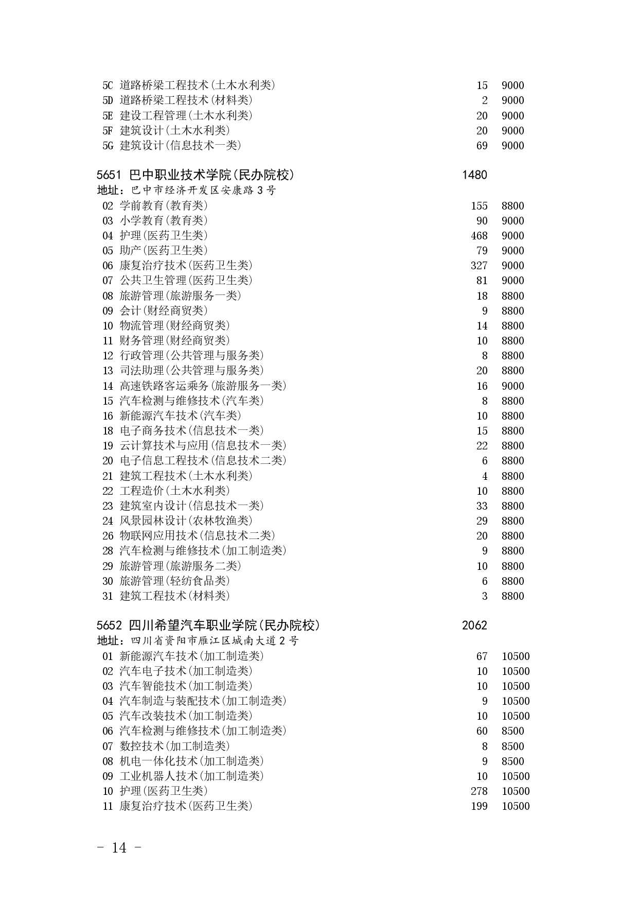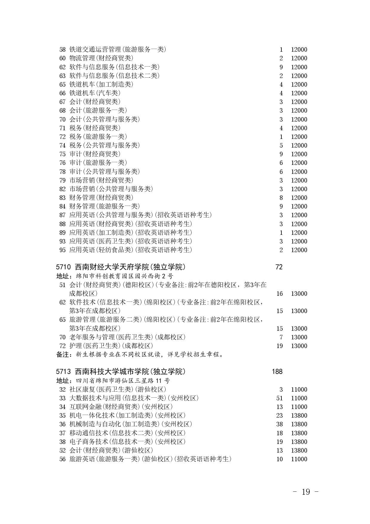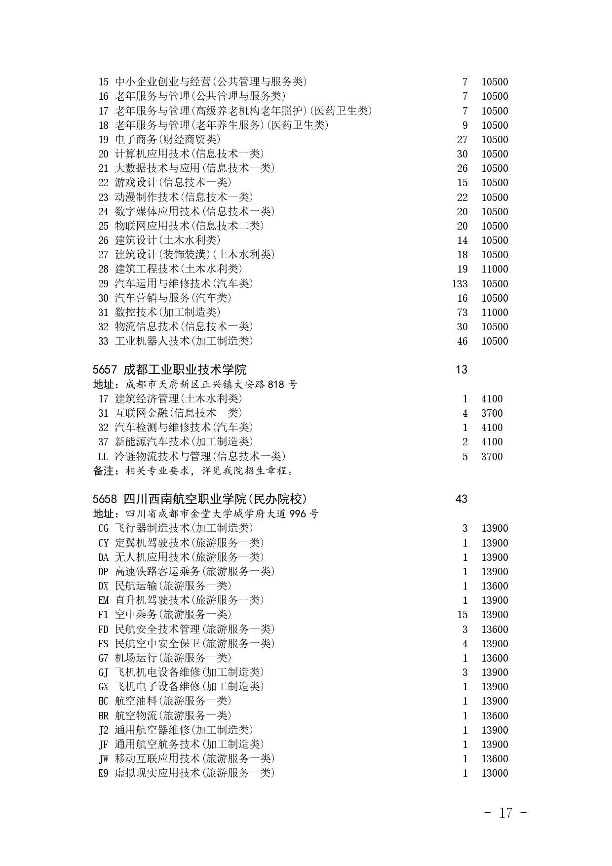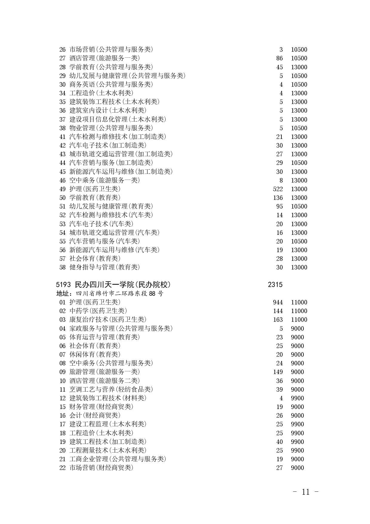 四川省2025年普通高校专升本招生专业及计划