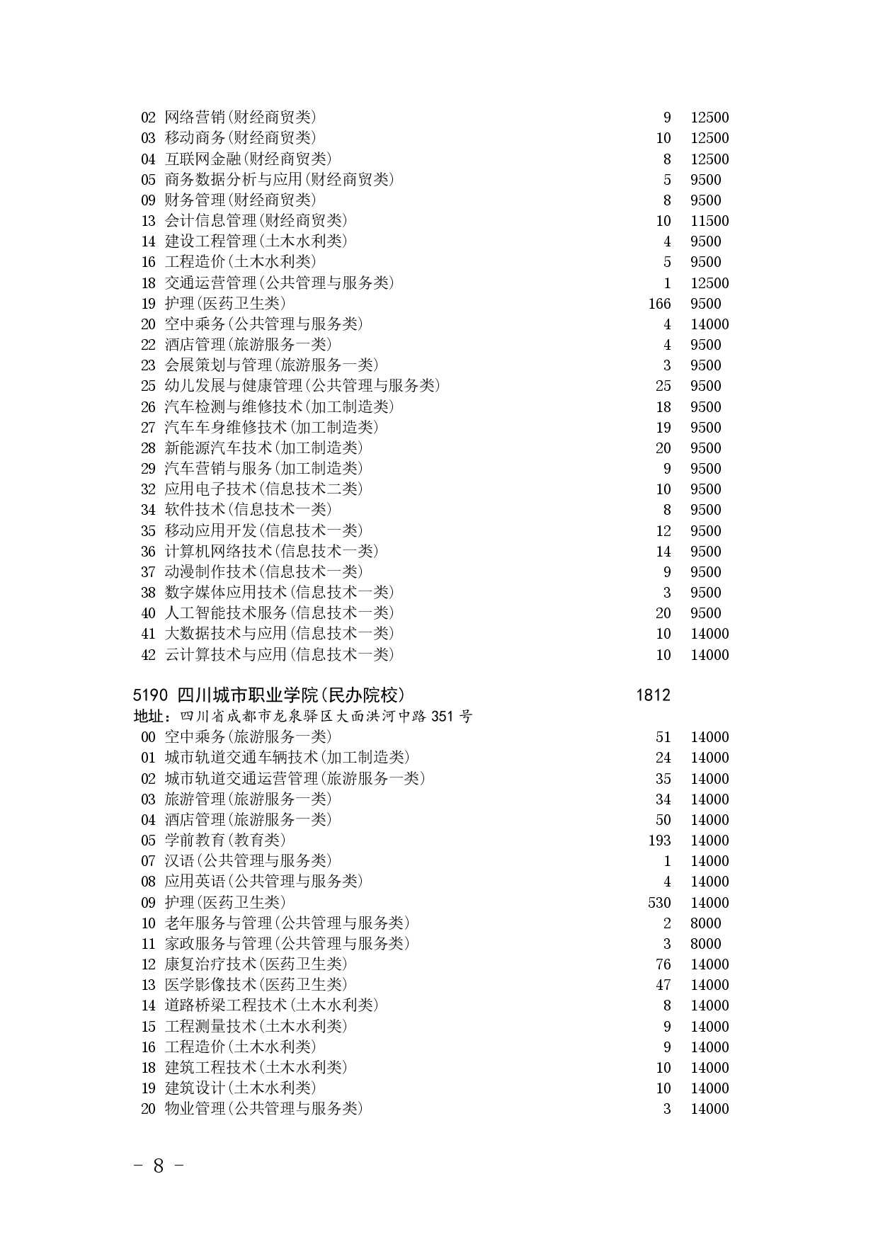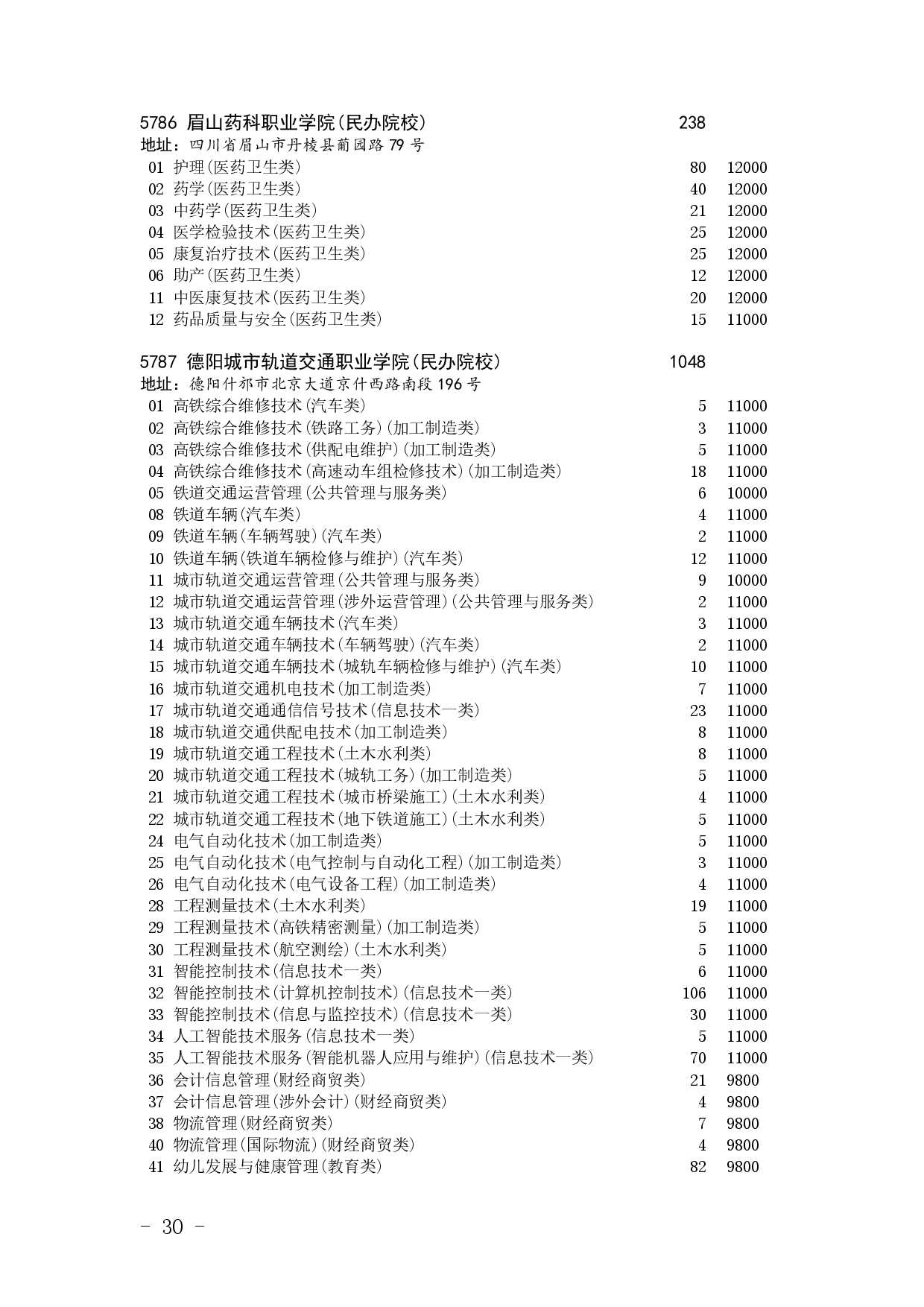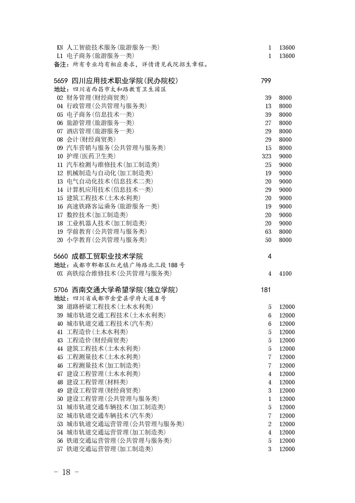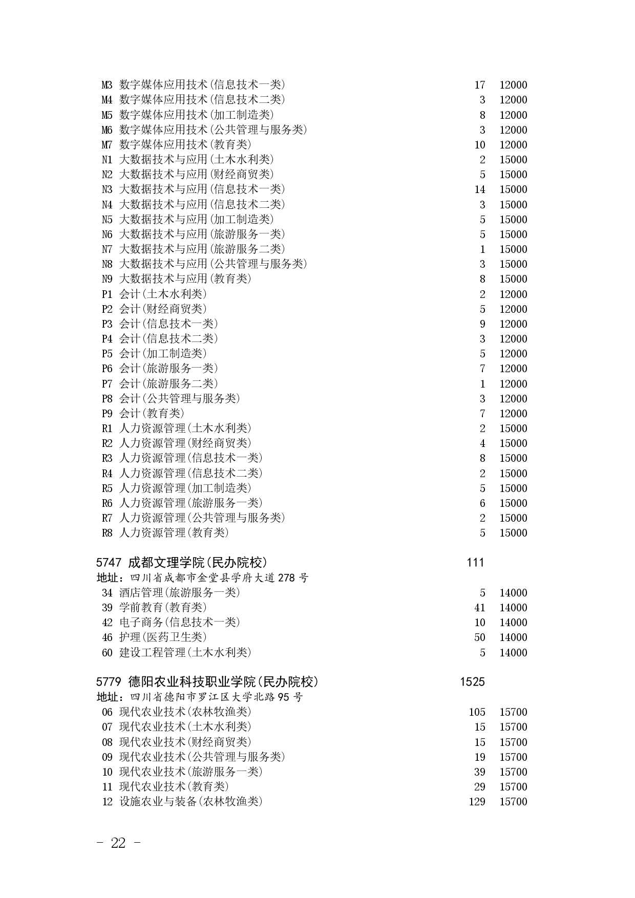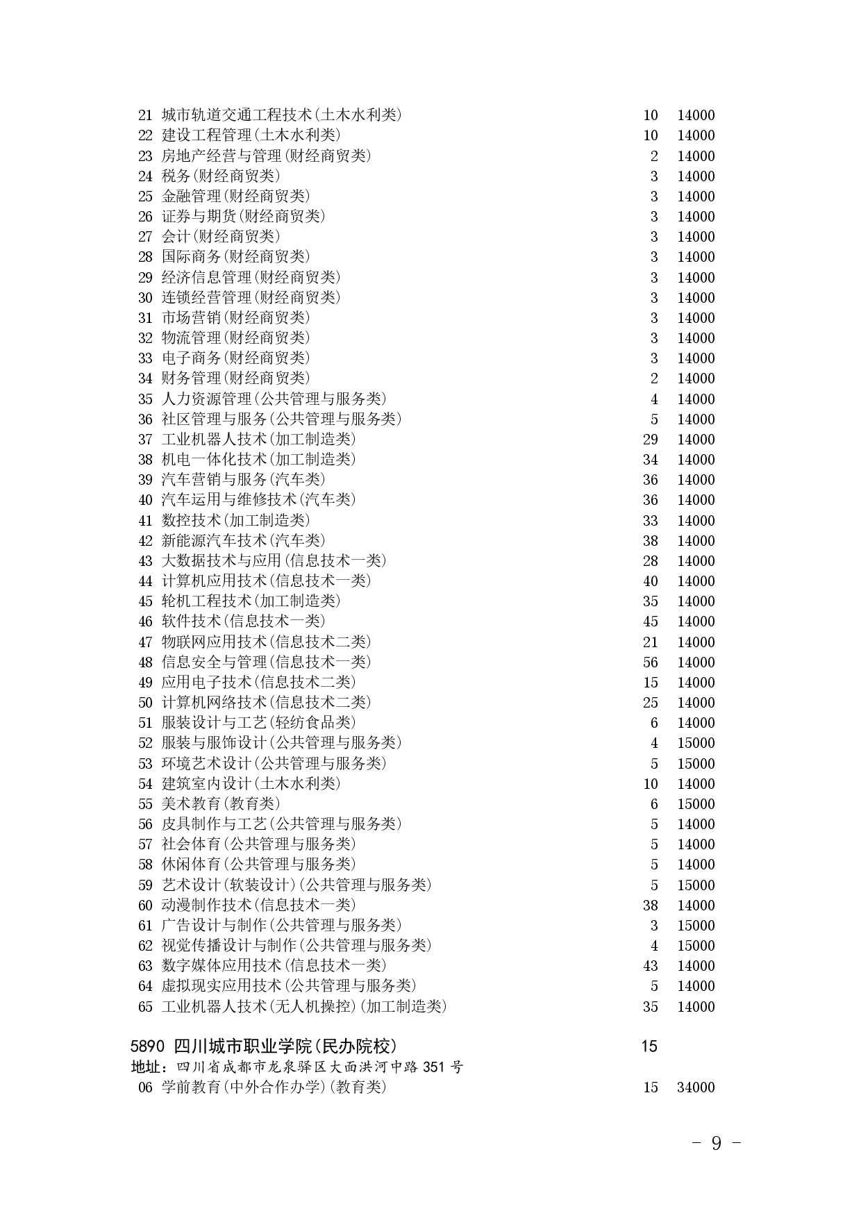四川省2025年普通高校专升本招生专业及计划