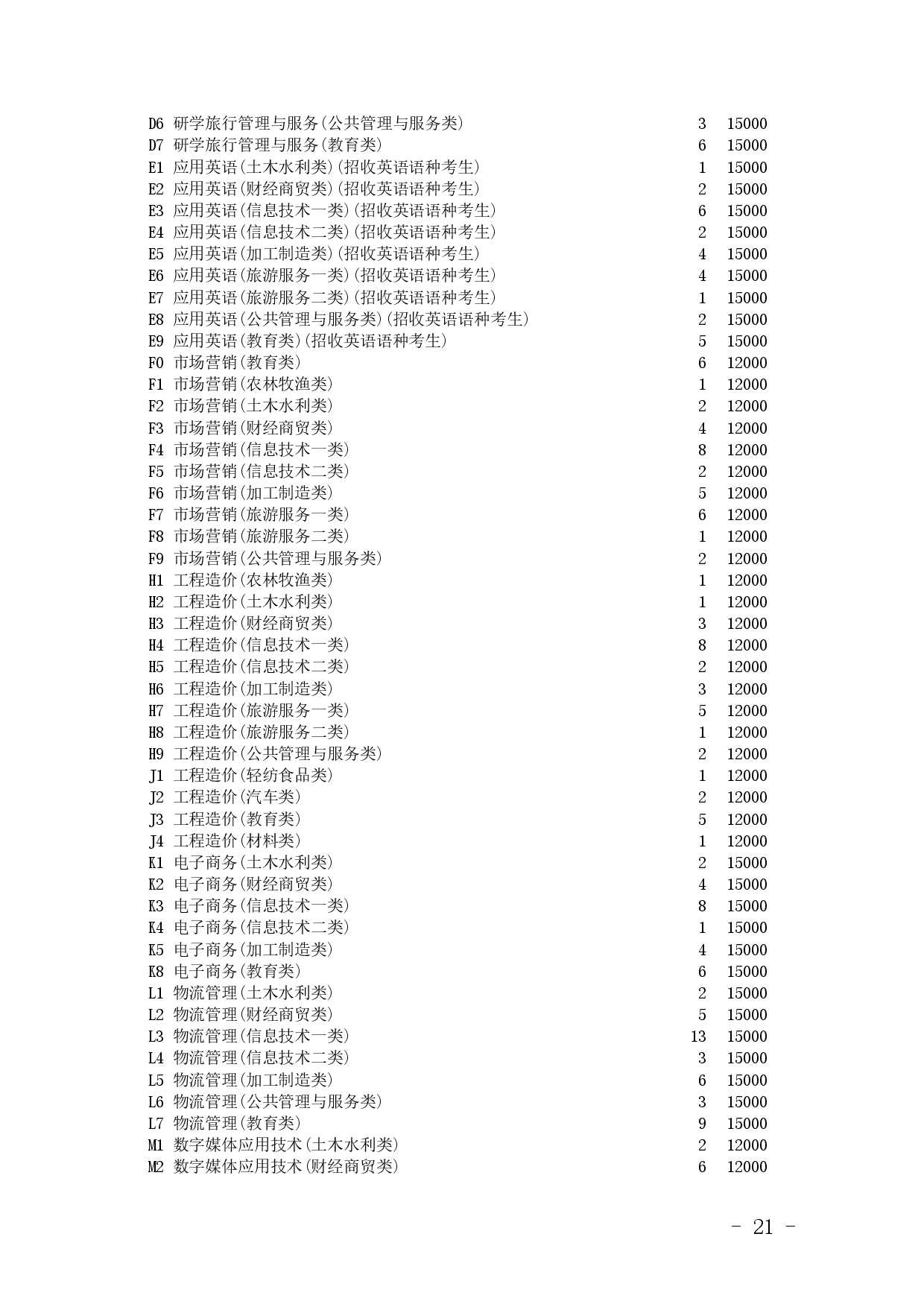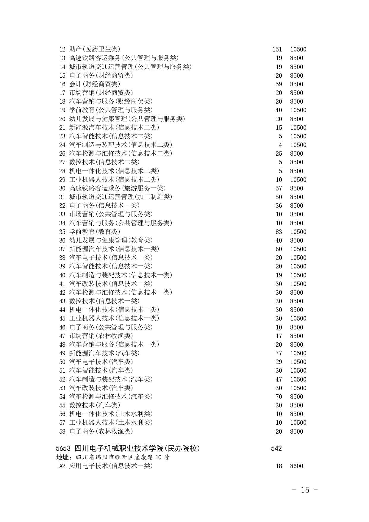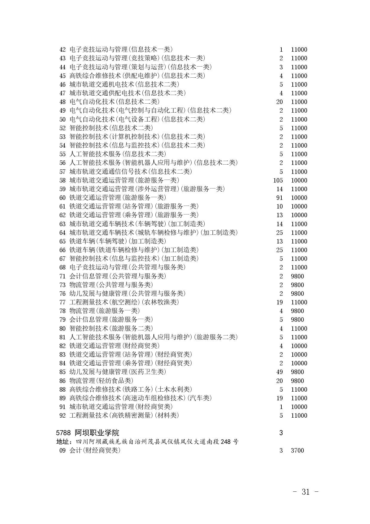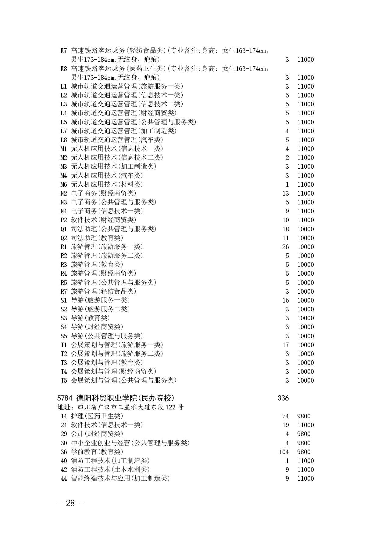 四川省2025年普通高校专升本招生专业及计划