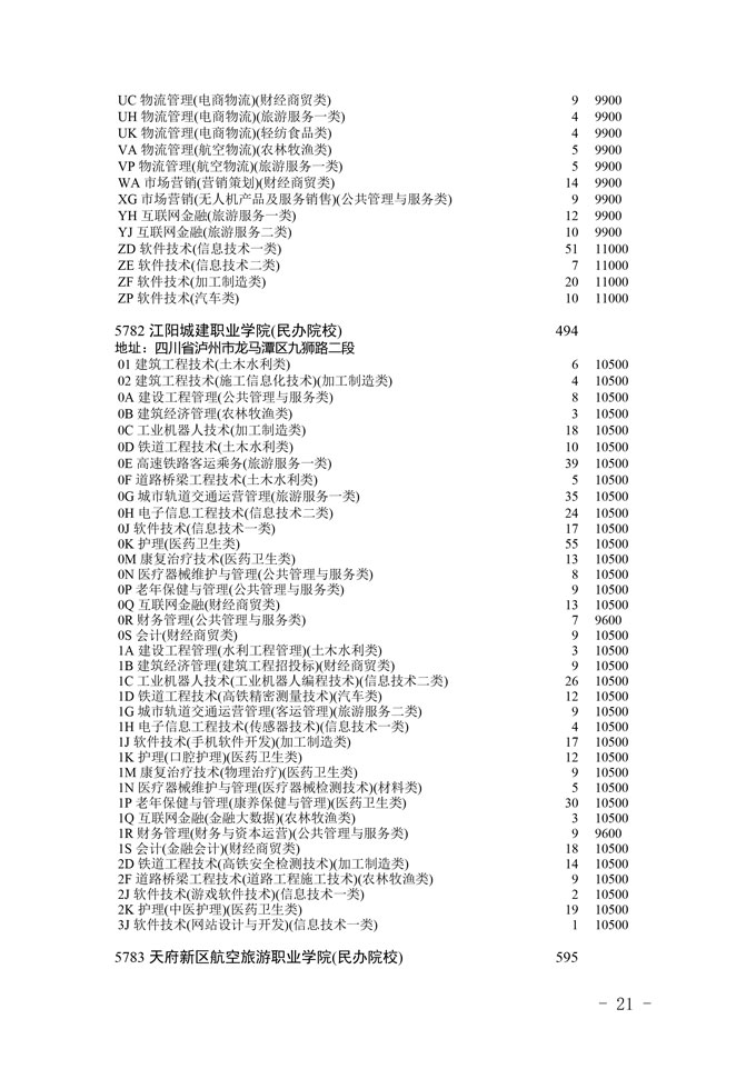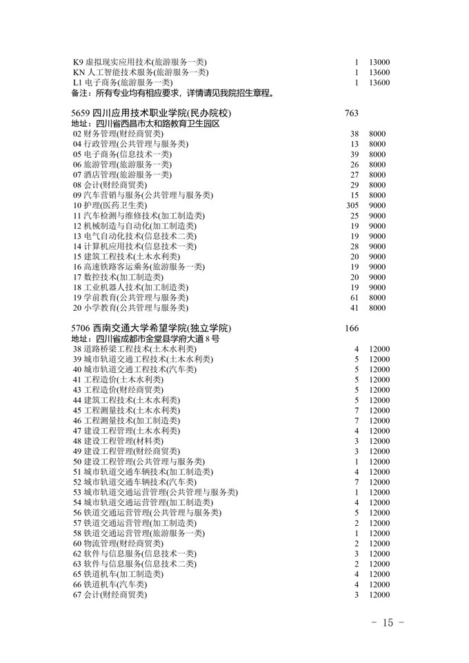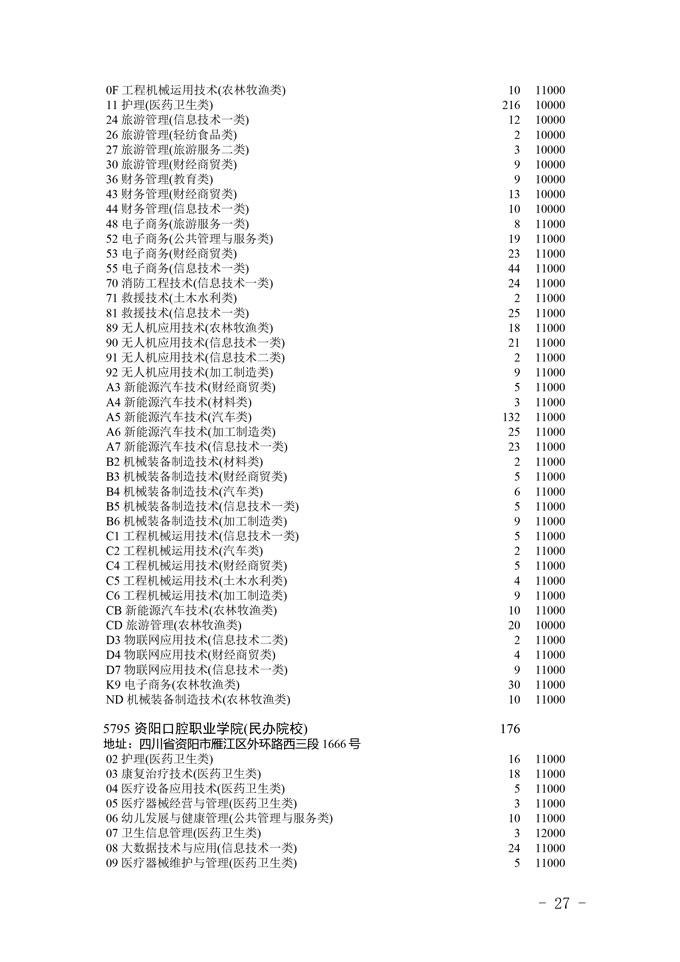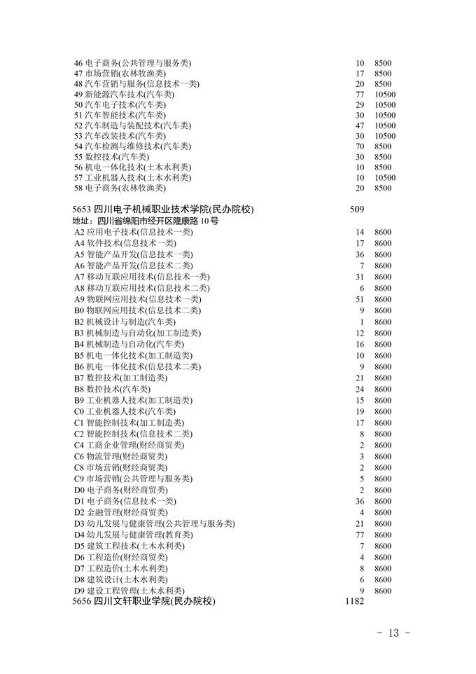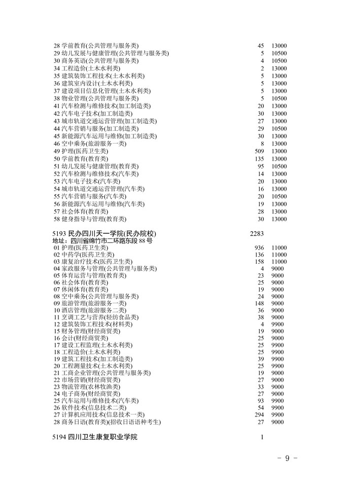 四川省2025年普通高校专升本招生专业及计划