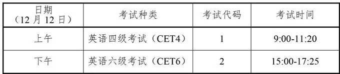 笔试开考科目为英语四级和英语六级,考试时间为12月12日。