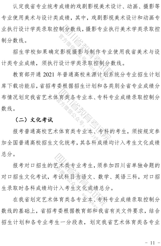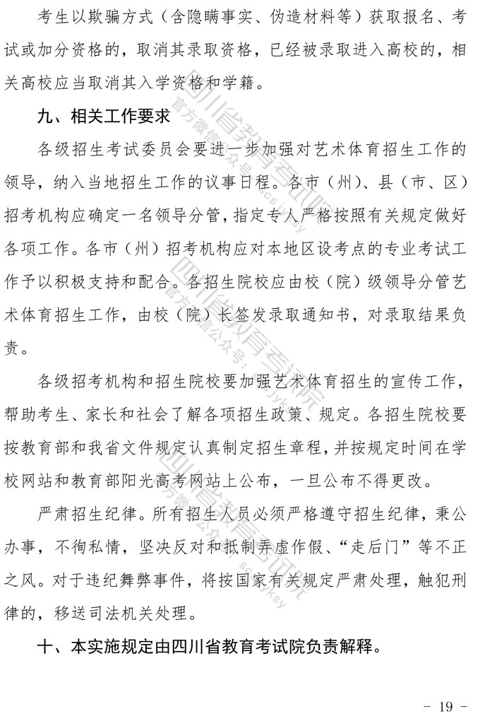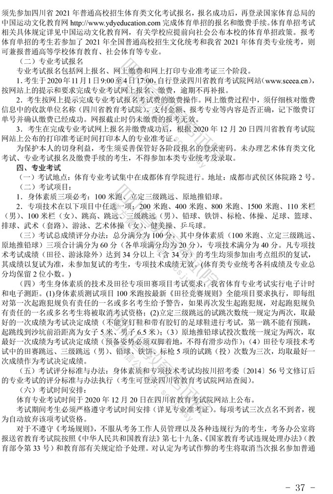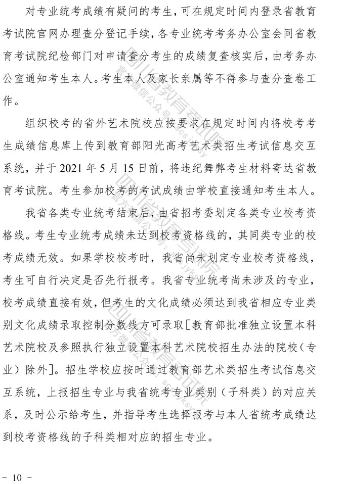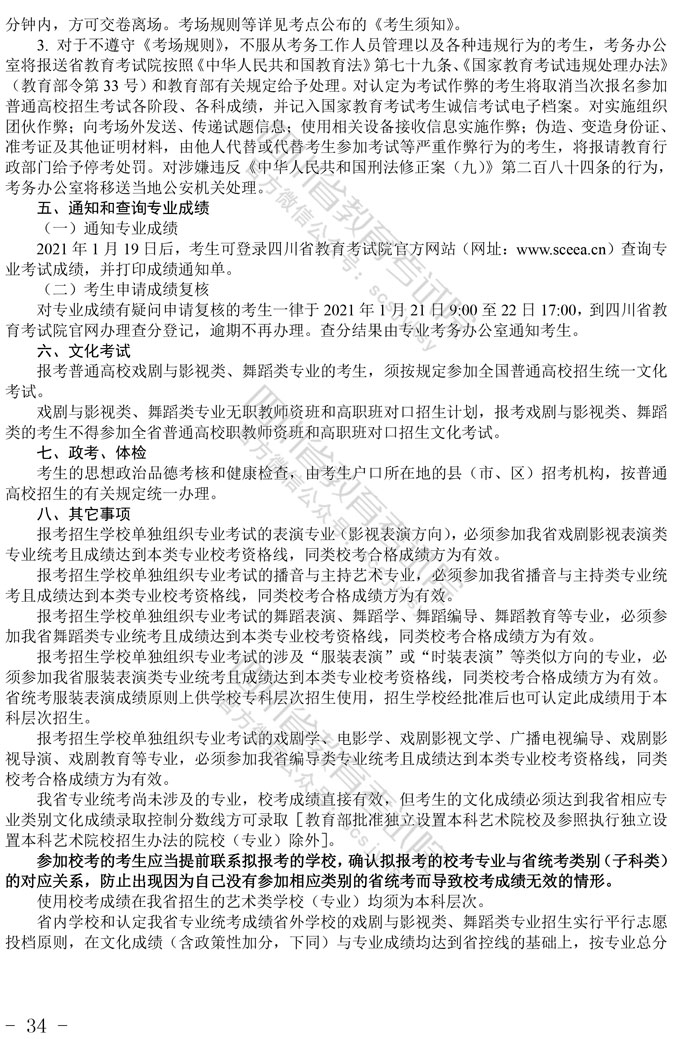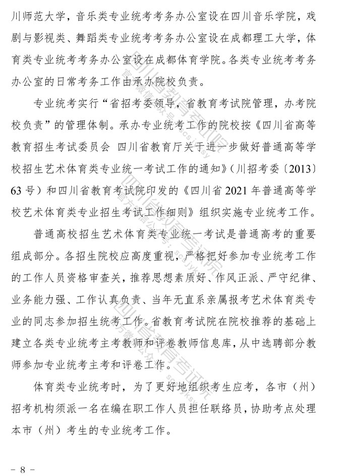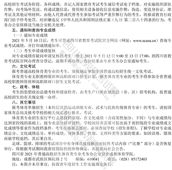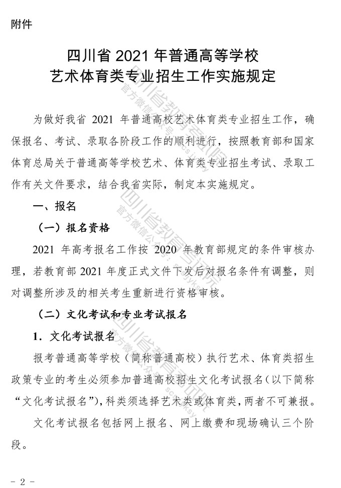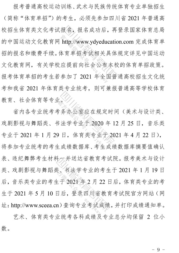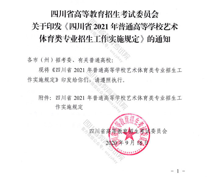 关于印发《四川省2021年普通高等学校艺术体育类专业招生工作实施规定》的通知