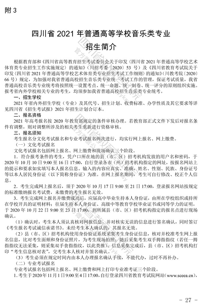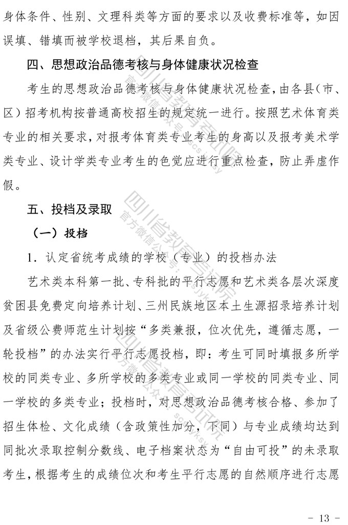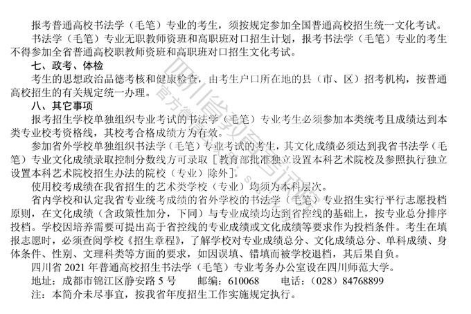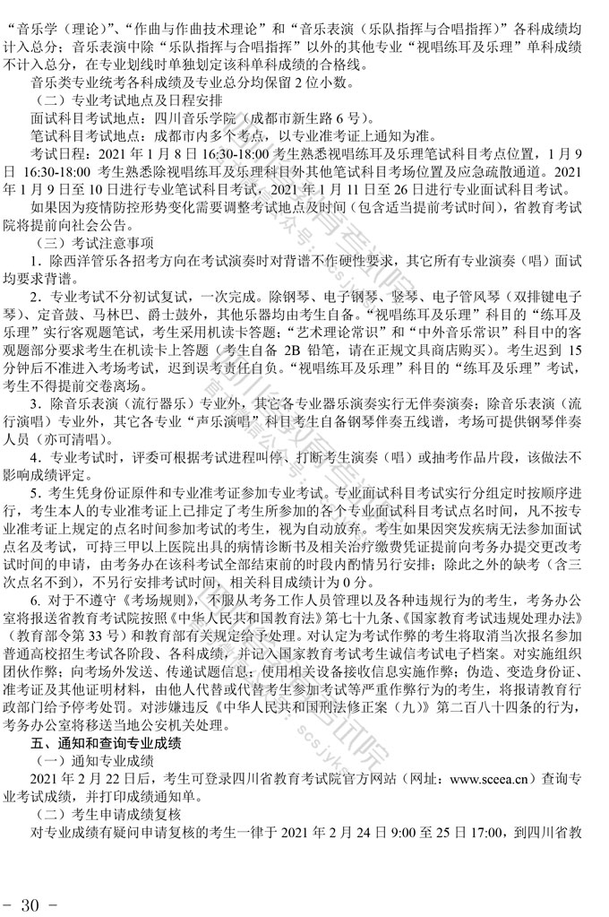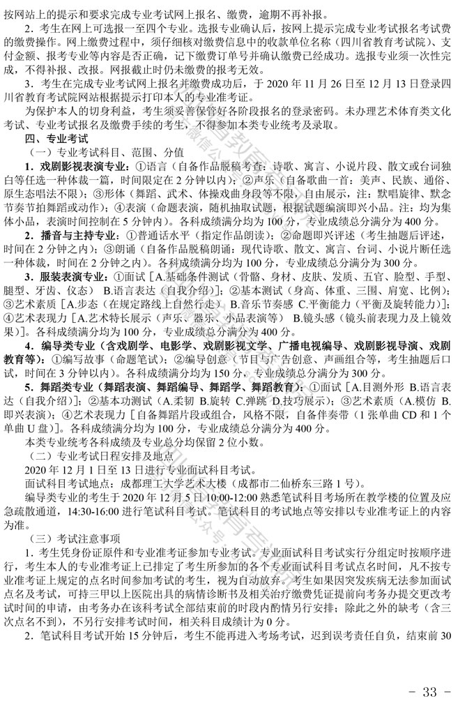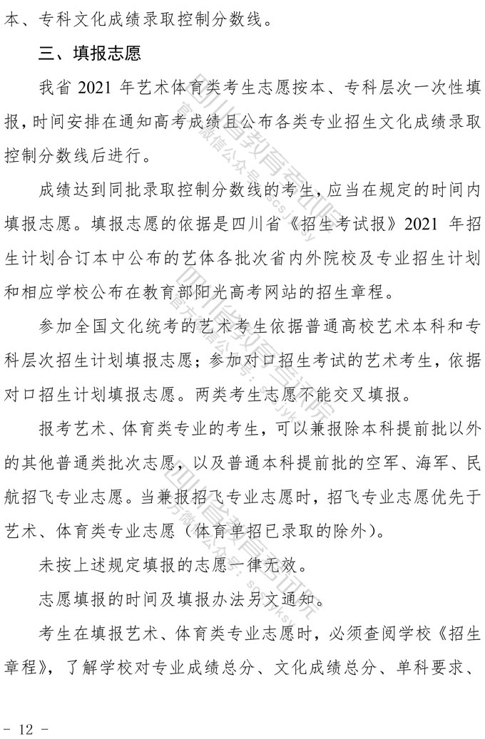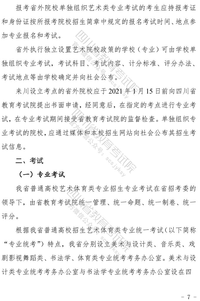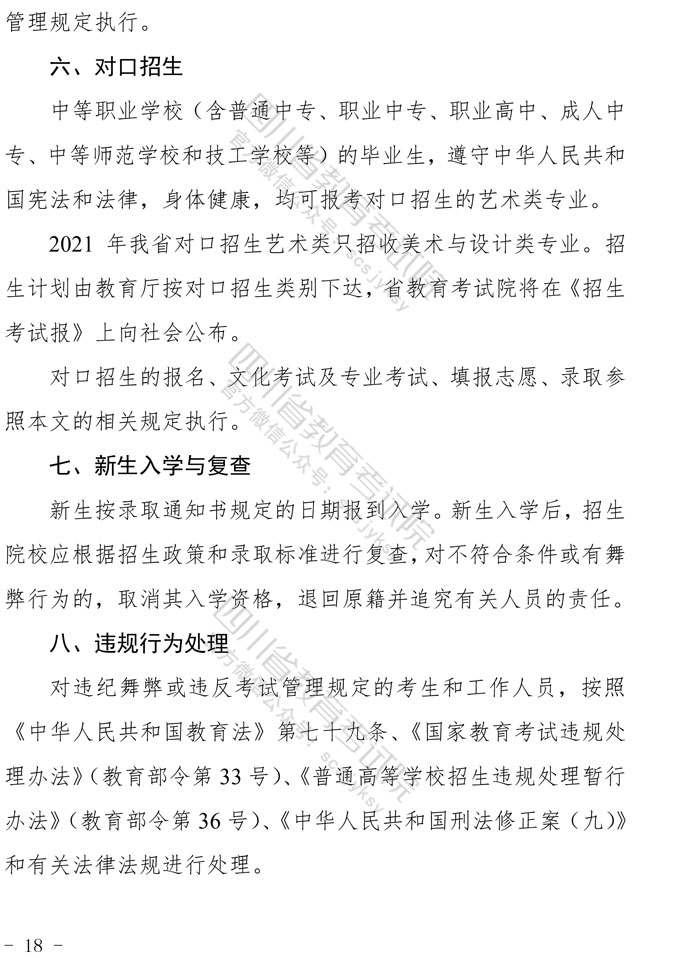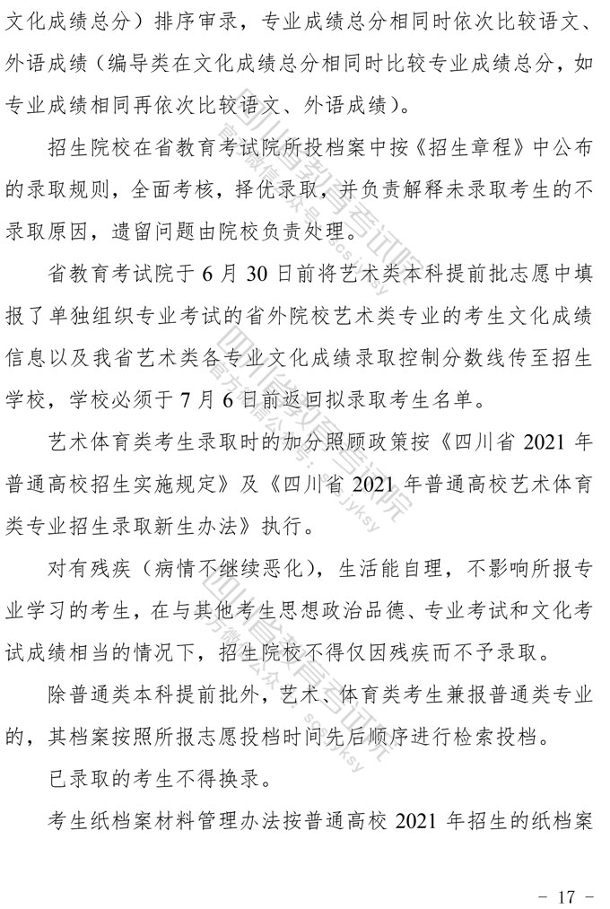 关于印发《四川省2021年普通高等学校艺术体育类专业招生工作实施规定》的通知