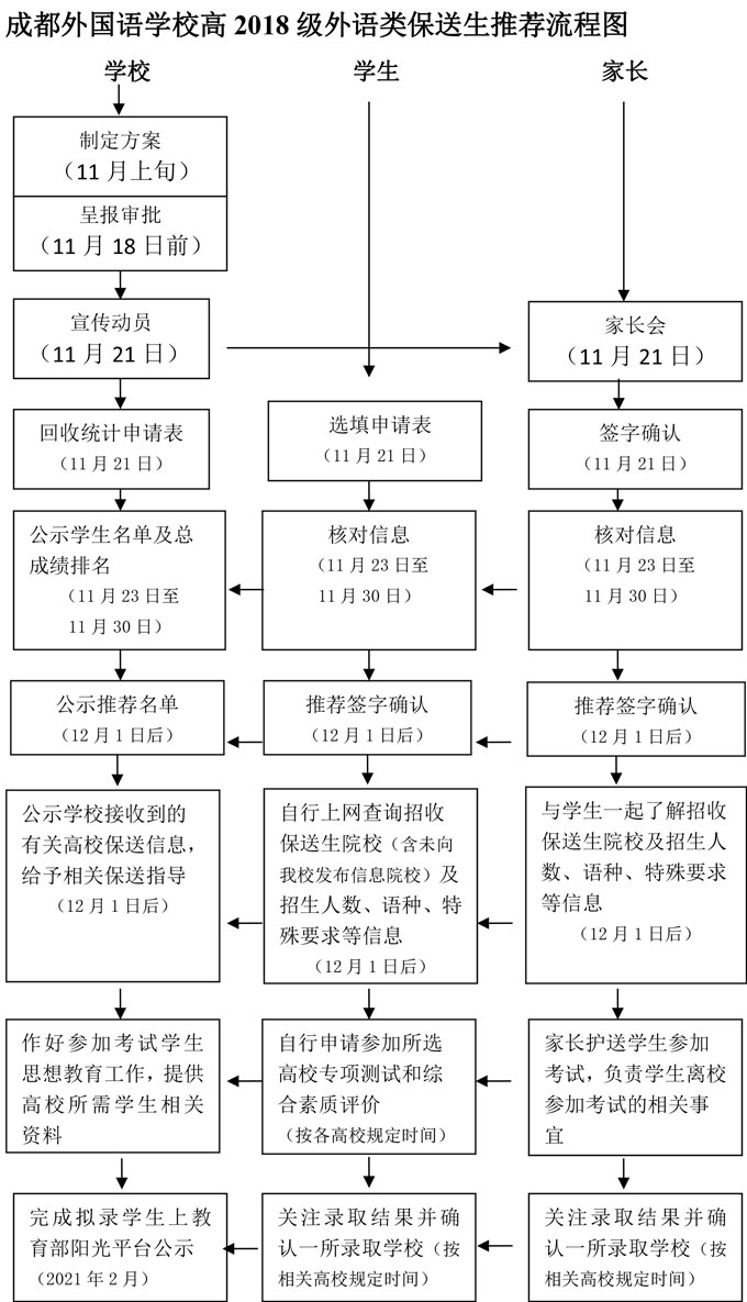 成立由校长任组长的“成都外国语学校保送生推荐工作领导小组”。