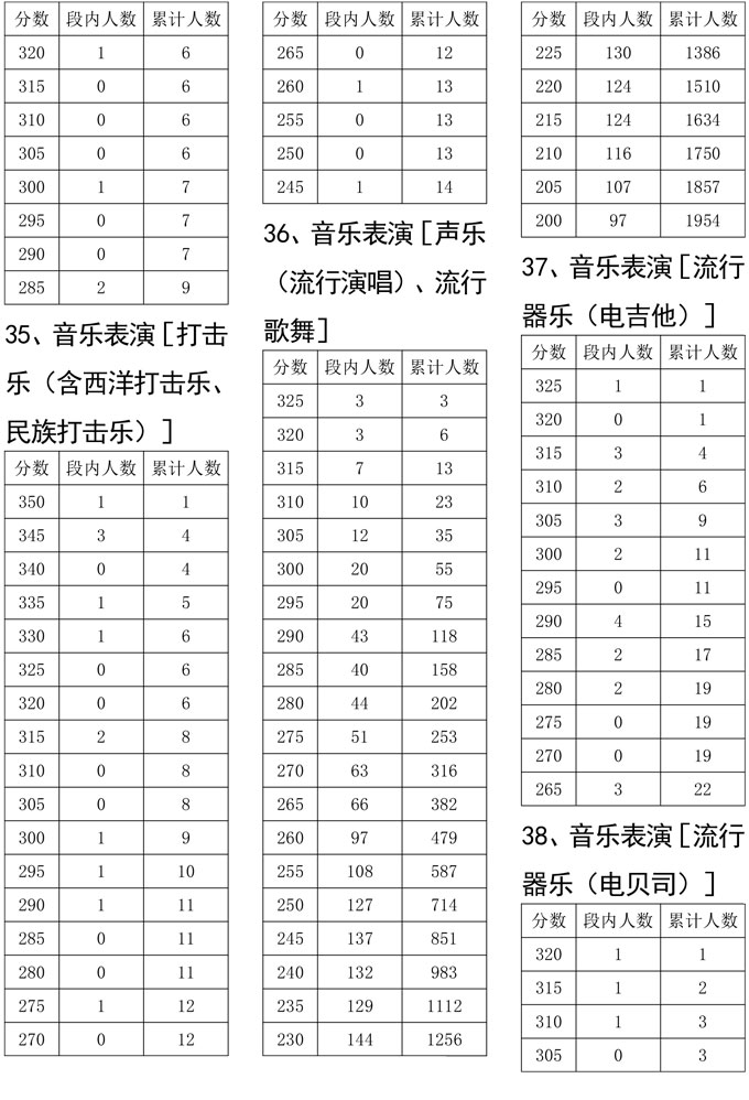 四川省2021年普通高校招生艺术类专业统考(音乐类)成绩五分段统计表