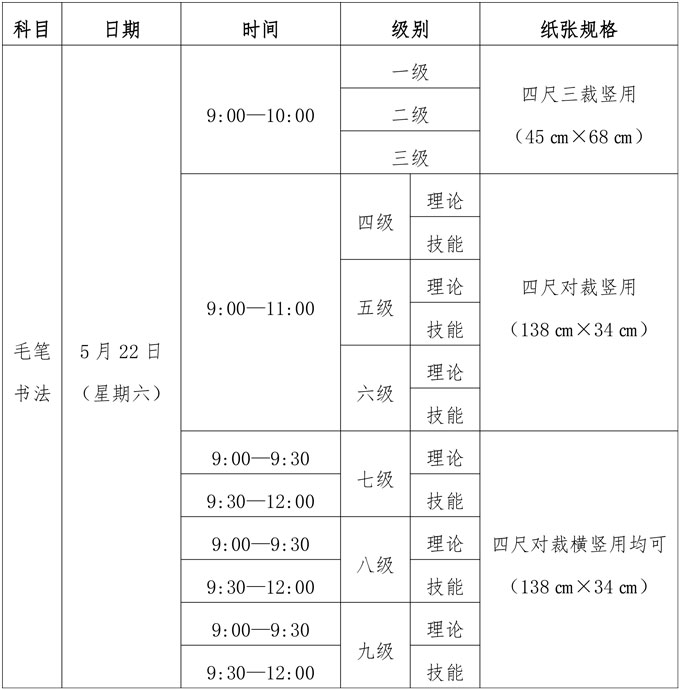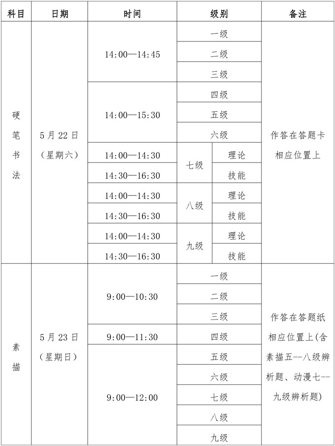 2021年上半年书画等级考试将于5月22日至23日举行,现将我省报考有关事宜通告如下。