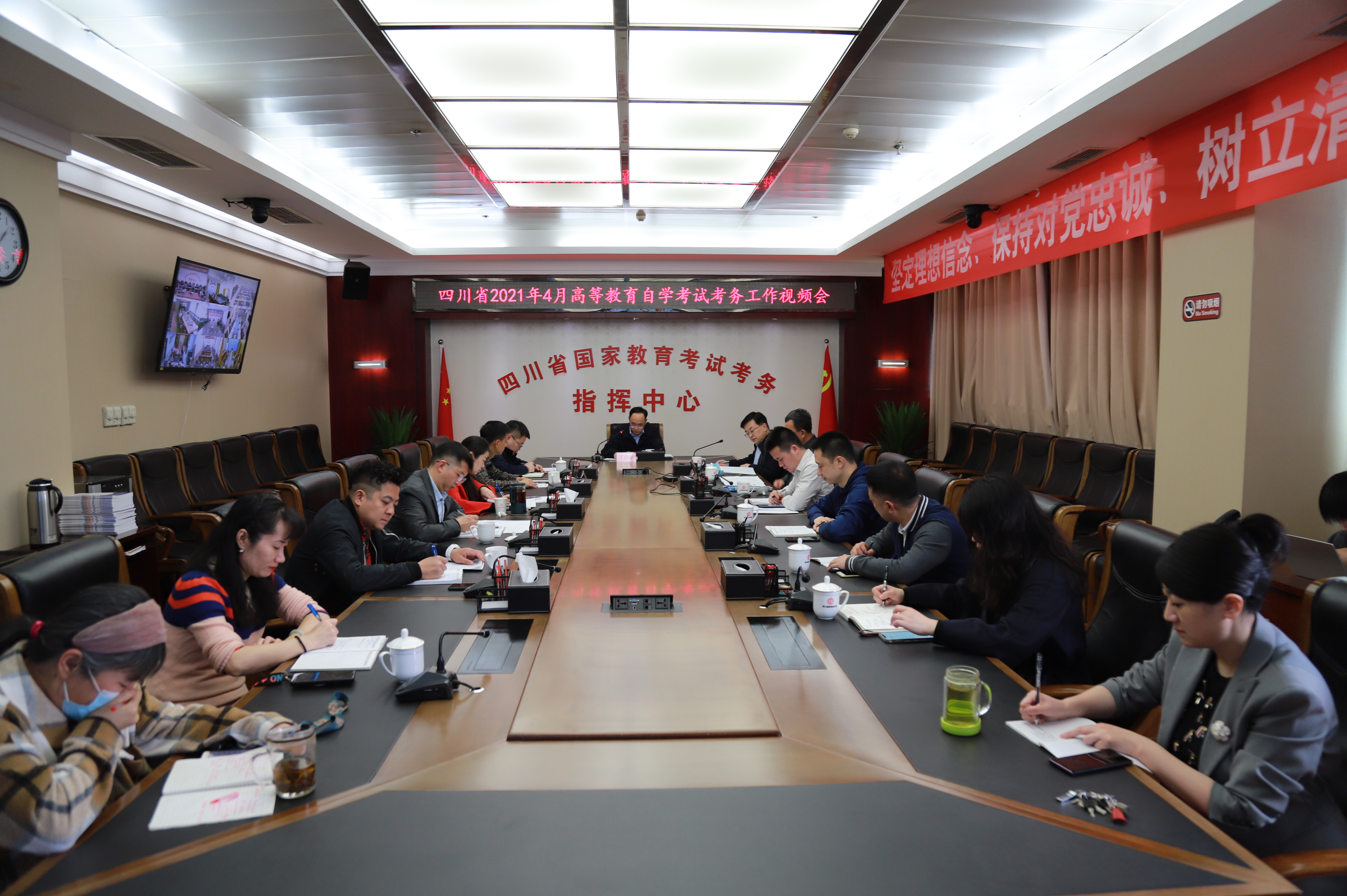 3月31日上午,我省召开2021年4月(21.1次)四川省高等教育自学考试考务工作视频会议,贯彻落实全国考务视频工作会议安排部署要求,对我省本次自学考试进行再动员、再部署、再培训。会议在四川省国家教育考试考务指挥中心设主会场,各市(州)设分会场,省招考委委员、省教育考试院党委书记丁念友同志出席会议并讲话,党委副书记舒欣同志主持会议。