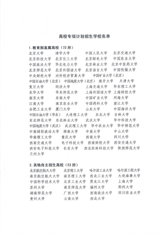 4.高校专项计划招生学校名单